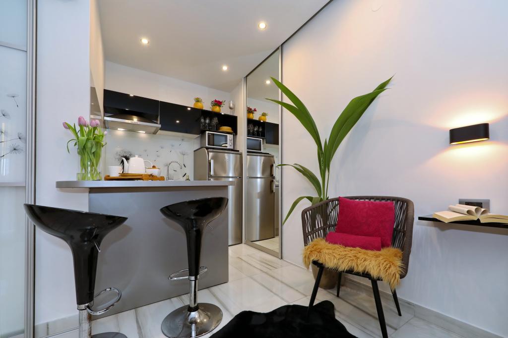 Zeer mooi ingericht en klaar voor twee personen. Het personeel was erg vriendelijk tijdens onze vakantie. Ik hield van de uitrusting van de Studio, die het comfort van het verblijf garandeert. Gefeliciteerd, ik raad het aan.