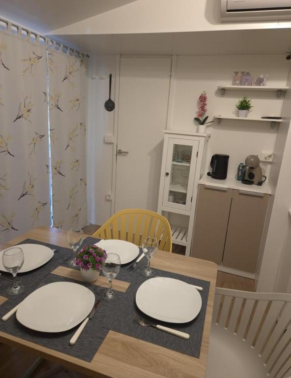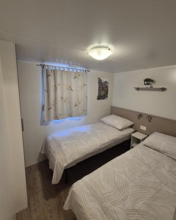 Comfortabele accommodatie: De stacaravan Glamour Pakoštane in Pakoštane biedt twee slaapkamers en twee badkamers, plus een ruime woonkamer. De accommodatie beschikt over een volledig uitgeruste keuken, airconditioning en gratis WiFi. Recreatiemogelijkheden: Gasten kunnen genieten van het terras, de bar en het kinderzwembad. Verder zijn er een eethoek, tuinmeubilair en gratis privéparkeergelegenheid op het terrein. Toplocatie: De camping ligt op 27 km van de luchthaven van Zadar, op een steenworp afstand van Punta Beach. In de buurt bevinden zich de jachthaven Kornati en het Biograd Heritage Museum, beide op 8 km afstand. De omgeving biedt volop mogelijkheden om te zeilen.