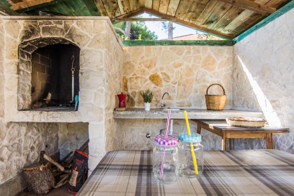 Het huis in de eerste rij aan zee in de baai van Lučina, gelegen in het stadje Pašman, biedt drie appartementen die perfect zijn voor een ontspannen vakantie aan zee. Het eerste appartement heeft twee slaapkamers en biedt plaats aan maximaal 5 personen. Het ruime interieur zorgt voor een aangenaam verblijf en het balkon biedt uitzicht op zee en het eilandje Galešnjak, ook wel bekend als het "Eiland van de Liefde". Er zijn ook twee appartementen met één slaapkamer, ideaal voor stellen, elk geschikt voor maximaal 2 personen. Eén daarvan, S1, biedt ook een prachtig uitzicht op zee en het eilandje Galešnjak, terwijl appartement A1 een rustgevend uitzicht biedt op het omliggende dennenbos. Voor gasten die met eigen vervoer komen, biedt het huis privéparkeergelegenheid, waardoor het gemakkelijk is om aan te komen en te vertrekken. Als u besluit de omgeving over zee te verkennen, is er ook een aanlegsteiger voor een boot. Daarnaast heeft de mediterrane tuin een overdekt terras met een tafel en stoelen. Er is ook een hout- en gasbarbecue aanwezig, zodat u buiten heerlijke maaltijden kunt bereiden.