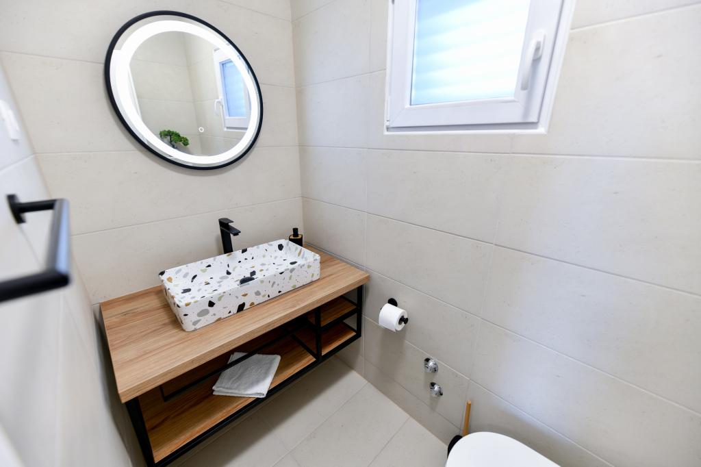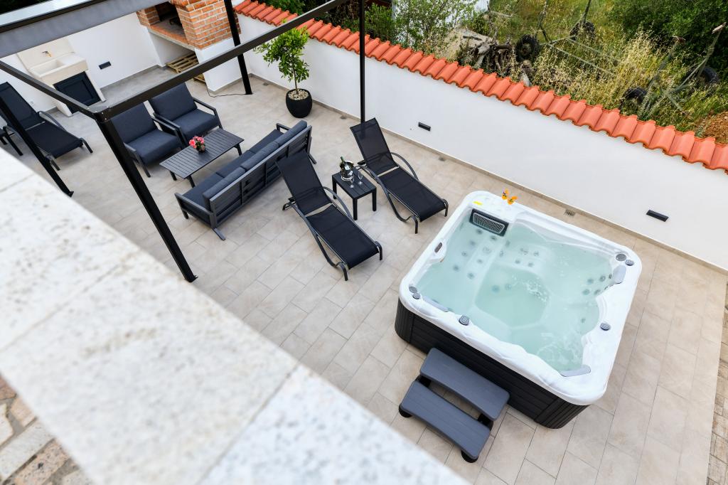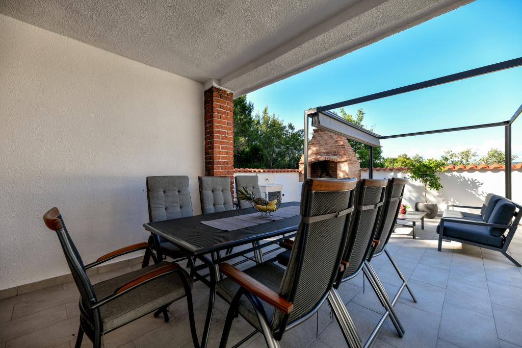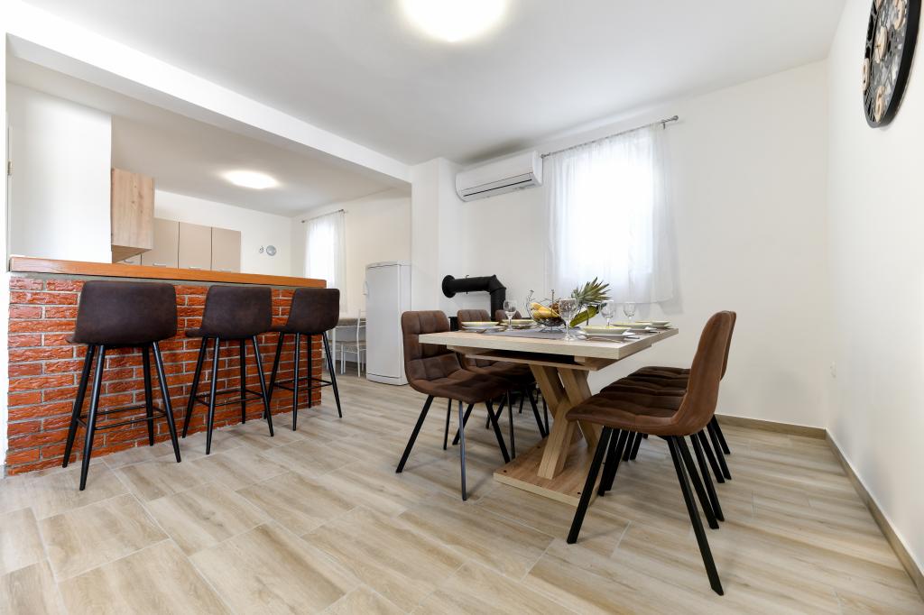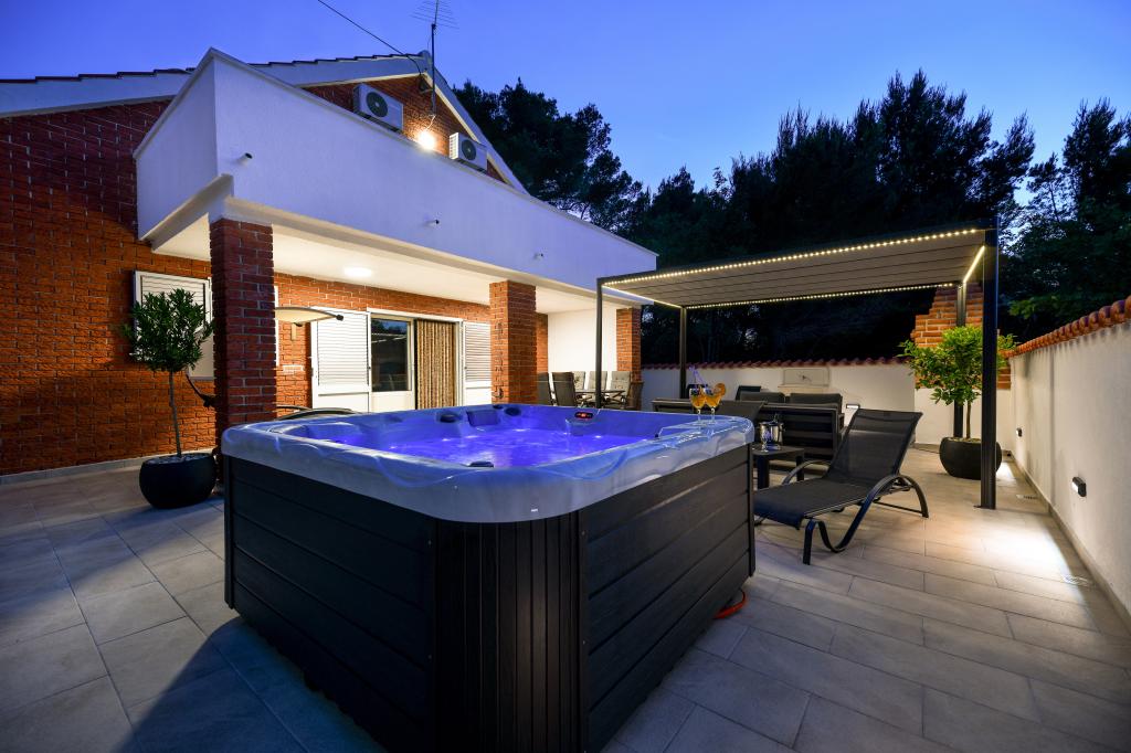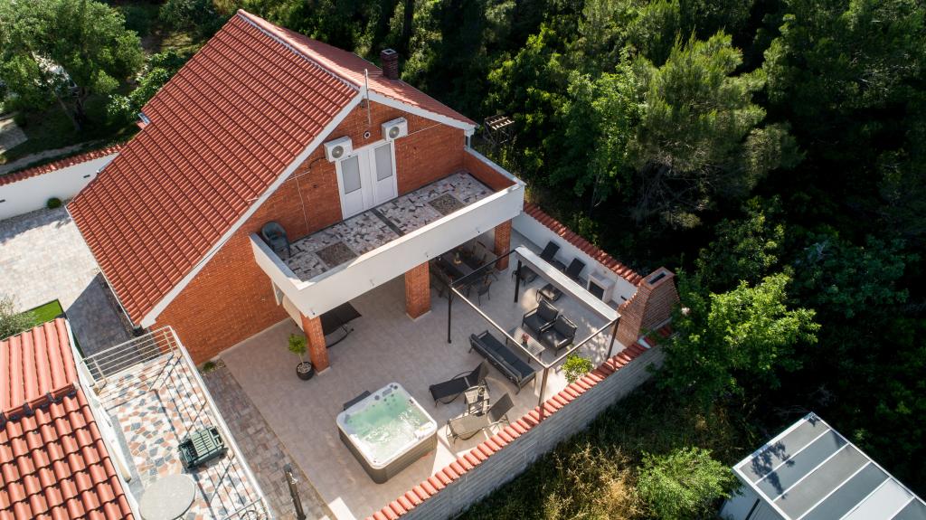 Het huis is gelegen op het eiland Pašman, in een oase van rust, stilte en schoonheid van een typisch klein Dalmatisch stadje. Drie minuten lopen naar het strand, vijf minuten naar de winkel. De faciliteit heeft een groot buitenterras, een barbecue, ligstoelen, een schommel om uit te rusten en een hydromassagebad. Op de begane grond is er een grote woonkamer met keuken, twee badkamers en drie toiletten, en een wasmachine. Er zijn 4 slaapkamers op de eerste verdieping, twee kamers hebben toegang tot een groot terras met uitzicht op zee, een tweepersoonsbed van 180x200, en de andere twee kamers hebben een tweepersoonsbed van 160x200 en uitzicht op het bos. Er is ook een toilet op de eerste verdieping. Een babybedje is op aanvraag beschikbaar. Er zijn drie parkeerplaatsen op het erf, evenals de mogelijkheid om een buitendouche te gebruiken. De woning is in mei 2023 volledig gerenoveerd. Een verblijf van 10 personen is ook mogelijk, in dat geval wordt tegen een meerprijs accommodatie voor twee personen voorzien in een studio-appartement op hetzelfde perceel. Het studio-appartement heeft een keuken met alle apparatuur, een badkamer met douche, tv, airconditioning en een terras met uitzicht op zee.