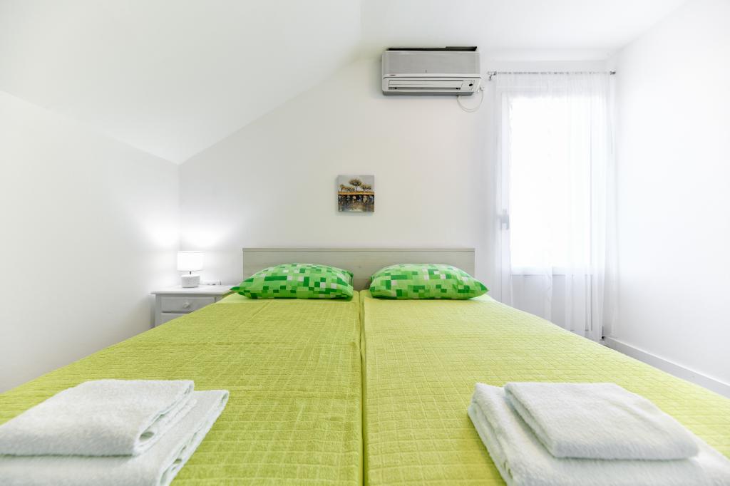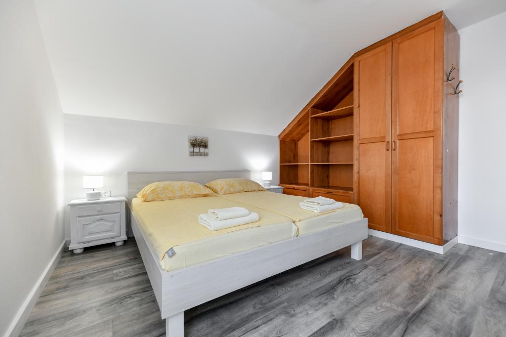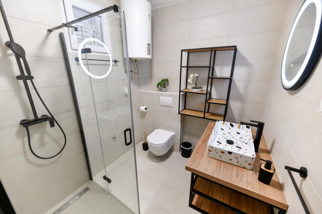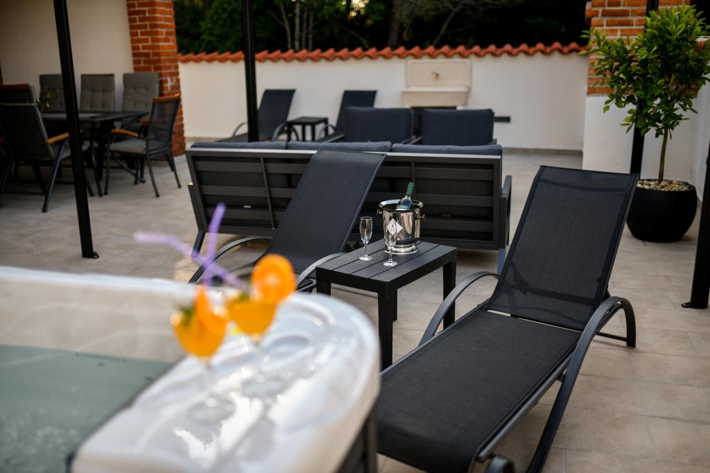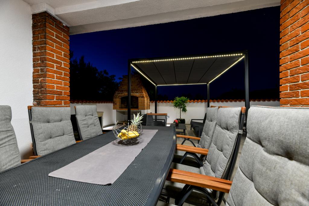 Het huis is gelegen op het eiland Pašman, in een oase van rust, stilte en schoonheid van een typisch klein Dalmatisch stadje. Drie minuten lopen naar het strand, vijf minuten naar de winkel. De faciliteit heeft een groot buitenterras, een barbecue, ligstoelen, een schommel om uit te rusten en een hydromassagebad. Op de begane grond is er een grote woonkamer met keuken, twee badkamers en drie toiletten, en een wasmachine. Er zijn 4 slaapkamers op de eerste verdieping, twee kamers hebben toegang tot een groot terras met uitzicht op zee, een tweepersoonsbed van 180x200, en de andere twee kamers hebben een tweepersoonsbed van 160x200 en uitzicht op het bos. Er is ook een toilet op de eerste verdieping. Een babybedje is op aanvraag beschikbaar. Er zijn drie parkeerplaatsen op het erf, evenals de mogelijkheid om een buitendouche te gebruiken. De woning is in mei 2023 volledig gerenoveerd. Een verblijf van 10 personen is ook mogelijk, in dat geval wordt tegen een meerprijs accommodatie voor twee personen voorzien in een studio-appartement op hetzelfde perceel. Het studio-appartement heeft een keuken met alle apparatuur, een badkamer met douche, tv, airconditioning en een terras met uitzicht op zee.