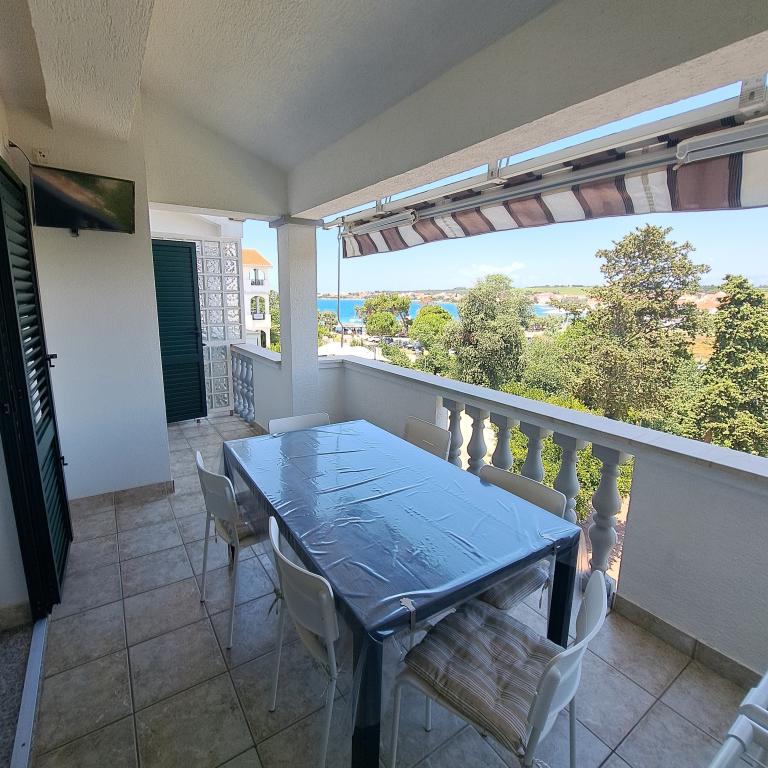 Super accommodatie in een ruim en schoon appartement, met een groot terras, met uitzicht op de zee en de bergen (Velebit). De stranden zijn dichtbij, schoon en zelfs in het hoogseizoen niet erg druk. Voor kinderen is er ook een zandzee. Er zijn meer restaurants in de stad, dus er is keuze genoeg Bereidwillige en altijd goedaardige eigenaar, wij komen hier graag terug!