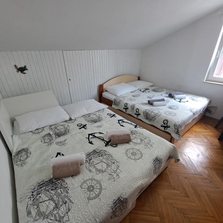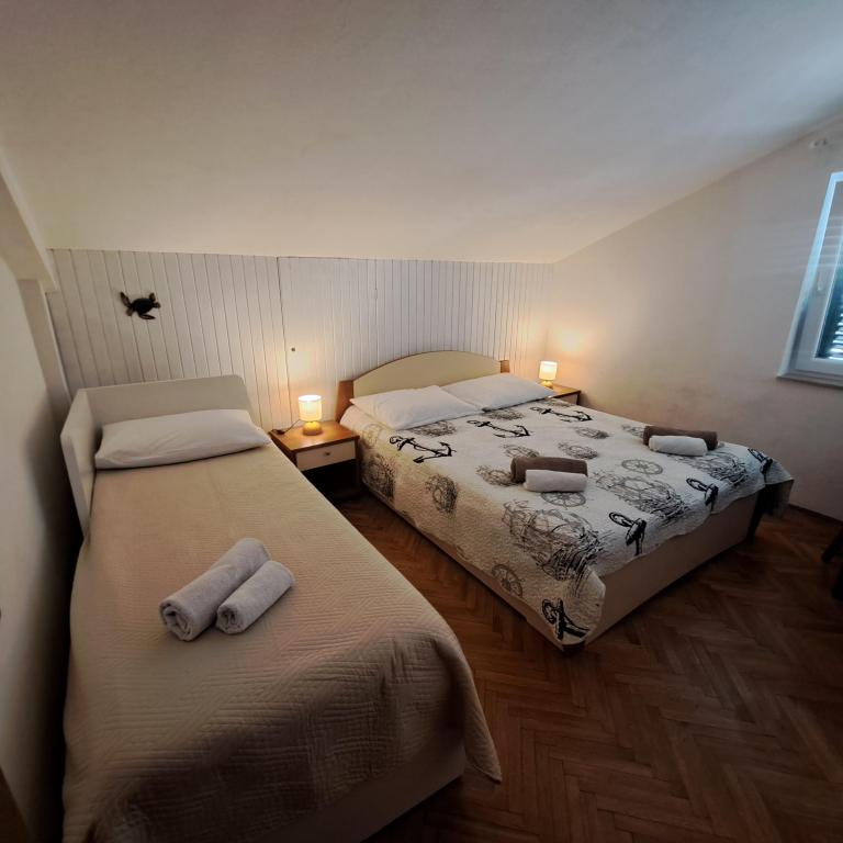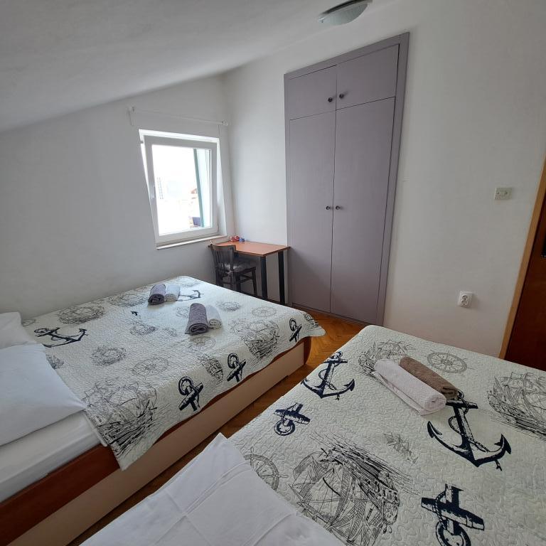 Nette, degelijk ingerichte en uiterst functionele accommodatie. De gastheren zijn buitengewoon meegaand en hartelijk, en wat het meest verheugt, is de locatie - een minuut of twee lopen naar het dichtstbijzijnde strand en binnen vijf minuten lopen zijn er verschillende stranden, voor elk wat wils. Het duurt net zo gemakkelijk om over de promenade te lopen om in het centrum van deze leuke Dalmatische stad te komen.