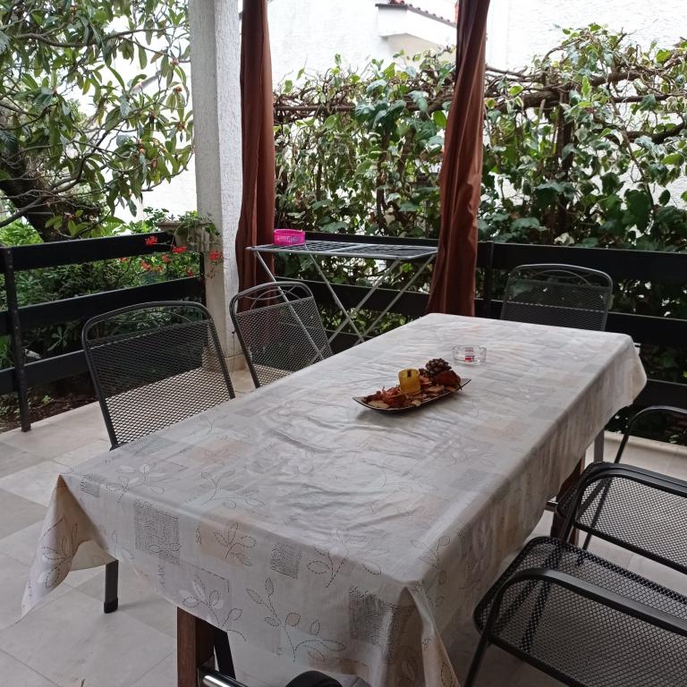 Gelegen in een dennenbos, op een steenworp afstand van het strand en dicht bij het zandstrand en het dorp, biedt dit appartement met airconditioning, drie slaapkamers, een woonkamer, een badkamer, een extra toilet, een volledig uitgeruste keuken en een terras op het zuiden voldoende ruimte voor vijf personen. Uw auto, geparkeerd in de tuin, is altijd binnen handbereik, evenals de grill voor een diner op het terras.