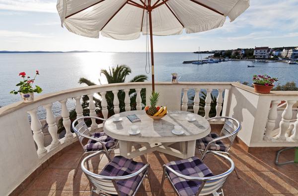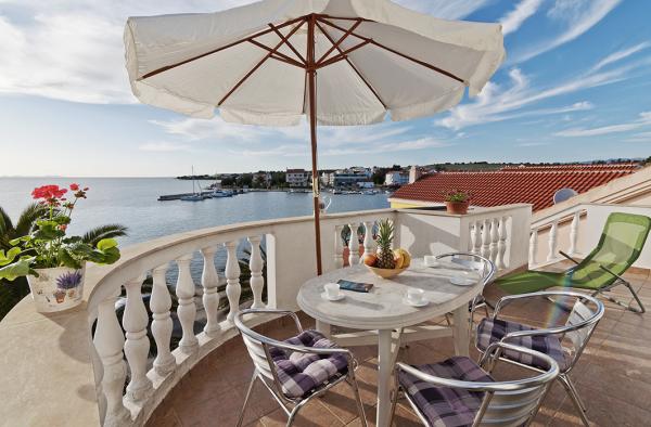 Mooi ingerichte appartementen in het centrum van Petrcane met een prachtig uitzicht op de zee. Genieten van de mooiste zonsondergang vanaf het terras. Gelegen aan de zee. 5 min lopen naar het strand, 10 minuten lopen zijn mooie stenen en kiezelstranden in het dennenbos.