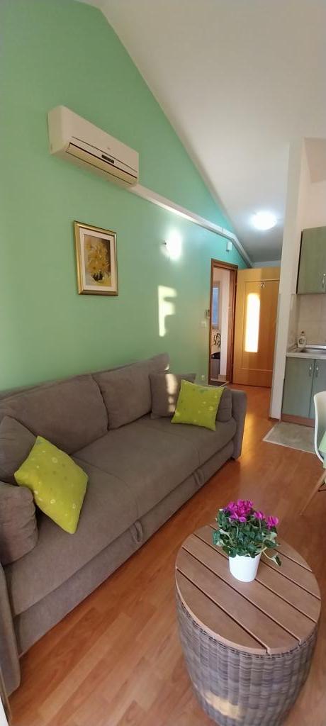 De appartementen bevinden zich in een nieuw familiehuis in het centrum van Petrcan. Onder het huis is er een mooi aangelegde kinderspeeltuin, boulevard en haven met boten. In de omgeving zijn er stranden, restaurants, winkels. De appartementen hebben overdekte balkons met uitzicht op de zee en de eilanden. Ze zijn comfortabel, met twee slaapkamers, woonkamer met keuken, badkamer. De appartementen zijn voorzien van airconditioning, met wi-fi internet, magnetron, waterkoker, koffiezetapparaat en bestek en drankjes. Ze zijn uitgerust met beddengoed en handdoeken.