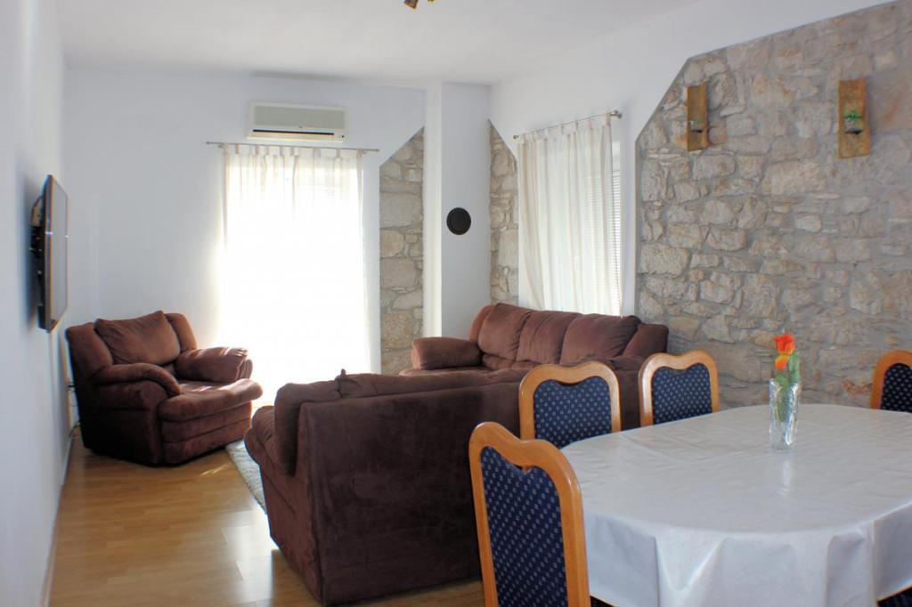 Appartement KATARINA in Pirovac, 50 meter van het centrum, met een totale oppervlakte van 90 m2 met 3 slaapkamers, een grote woonkamer, keuken en eetkamer. Er staat een bank in de woonkamer. Het terras is 12m2 groot en is overdekt en beschut tegen de zon. Het appartement is geschikt voor maximaal 6 personen. Het appartement ligt op een aantrekkelijke locatie, op slechts 150 meter van het strand. Het appartement is volledig uitgerust met apparatuur in de keuken en een LED (140 cm) TV (internet, Netflix). De keuken is volledig uitgerust voor het bereiden en serveren van eten en drinken (oven, koelkast, vriezer, kookplaat, waterkoker). De badkamer is uitgerust voor langer gebruik (wasmachine, haardroger, etc.). Elke kamer is voorzien van airconditioning. Er is 1 gratis parkeerplaats beschikbaar voor gasten. Vooruitbetaling van 30% van de prijs van het verblijf. De volledige betaling voor uw verblijf dient u te voldoen bij aankomst in het appartement.