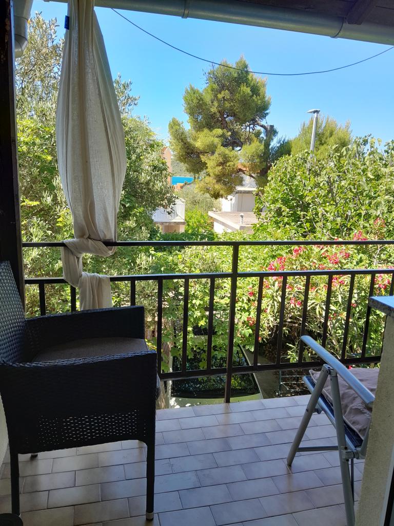 Het appartement Log Inn bevindt zich op de eerste verdieping van een huis met slechts twee appartementen, in een rustig steegje, ideaal voor gezinnen. De tuin van het huis is schaduwrijk met olijf-, vijgen- en dennenbomen en beschikt over een parkeerplaats. Het centrum met winkels, bakkerijen, patisserieën, cafés en restaurants ligt op 10 minuten loopafstand en het eerste kiezelstrand is slechts 5-10 minuten lopen. Log Inn is een aangenaam verblijf, ongeacht het weer. Het is ruim en heeft een aparte woonkamer met speelgoed en prentenboeken. Het is goed uitgerust (servies, waterkoker, koffiezetapparaat, max-tv, wifi, airconditioning) en in de woonkamer kunt u 's avonds in de lente heerlijk ontspannen bij het haardvuur. Het terras met tuinmeubilair is aangenaam en gasten kunnen er graag ontbijten, zonnebaden of van de avond genieten. De studio is kleiner en heeft een kleinere kitchenette, maar dankzij de tuin is het er ook in de zomerse hitte aangenaam. Beide appartementen zijn voorzien van airconditioning en verwarming. Buiten het seizoen worden ze met korting en per maand verhuurd.