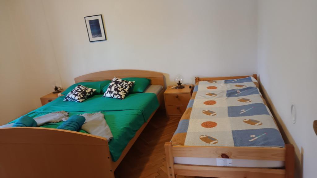 Ruim appartement, op de 1e verdieping, twee slaapkamers met elk drie bedden (tweepersoonsbed en eenpersoonsbed), keuken, woonkamer, toilet, badkamer, balkon. Airconditioning in beide slaapkamers, satelliet-tv, parkeerplaats, grill, wifi, dicht bij het strand. Het is gelegen in een rustig deel van Pirovac, 5-10 minuten lopen naar het centrum en minder dan 5 minuten naar het strand Lolić.