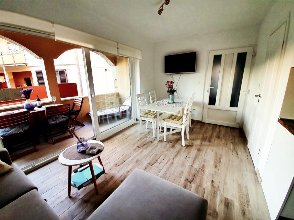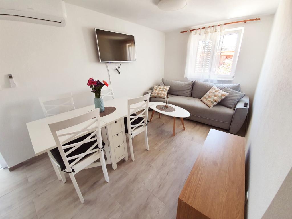 Goed uitgerust appartement. Grote koelkast, vaatwasser, oven en magnetron + alles wat je nodig hebt in de keuken Comfortabele bedden, schoon en netjes. De gastheren behulpzaam en erg aardig. Geweldig kontakt! Rustige omgeving en heerlijke vijgen binnen handbereik. Welkomstverrassing voor gasten. Een ideaal vertrekpunt voor uitstapjes naar Zadar, Trogir en Vodice of voor uitstapjes naar Kornati, Krka en anderen. Ik raad het prachtige eiland Murter aan met het prachtige strand van Riva Podvrške, op 25 minuten rijden met de auto. Ik raad het ten sterkste aan!