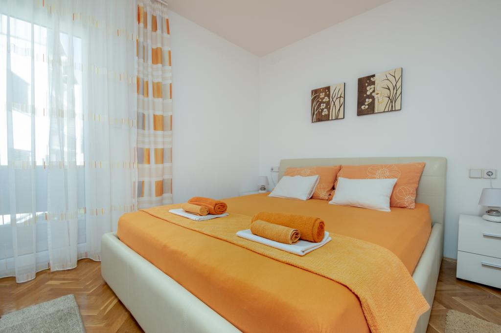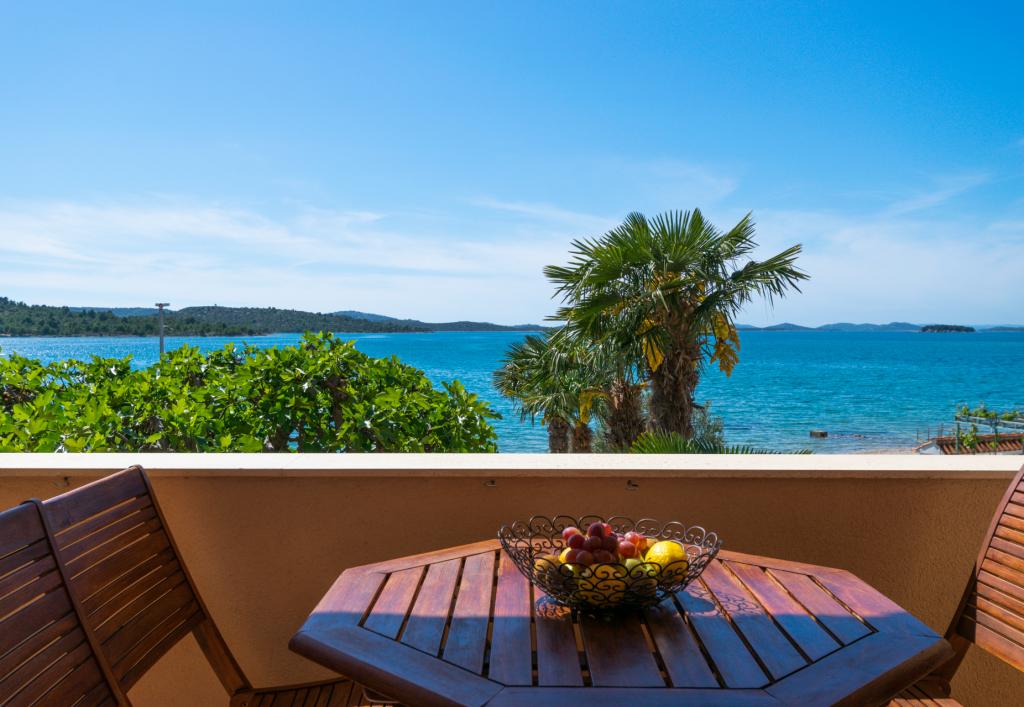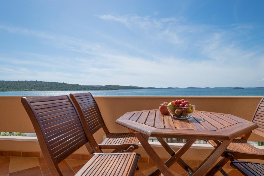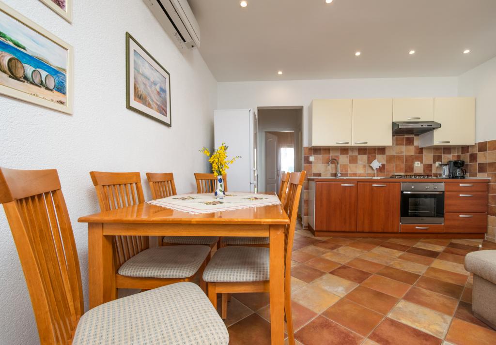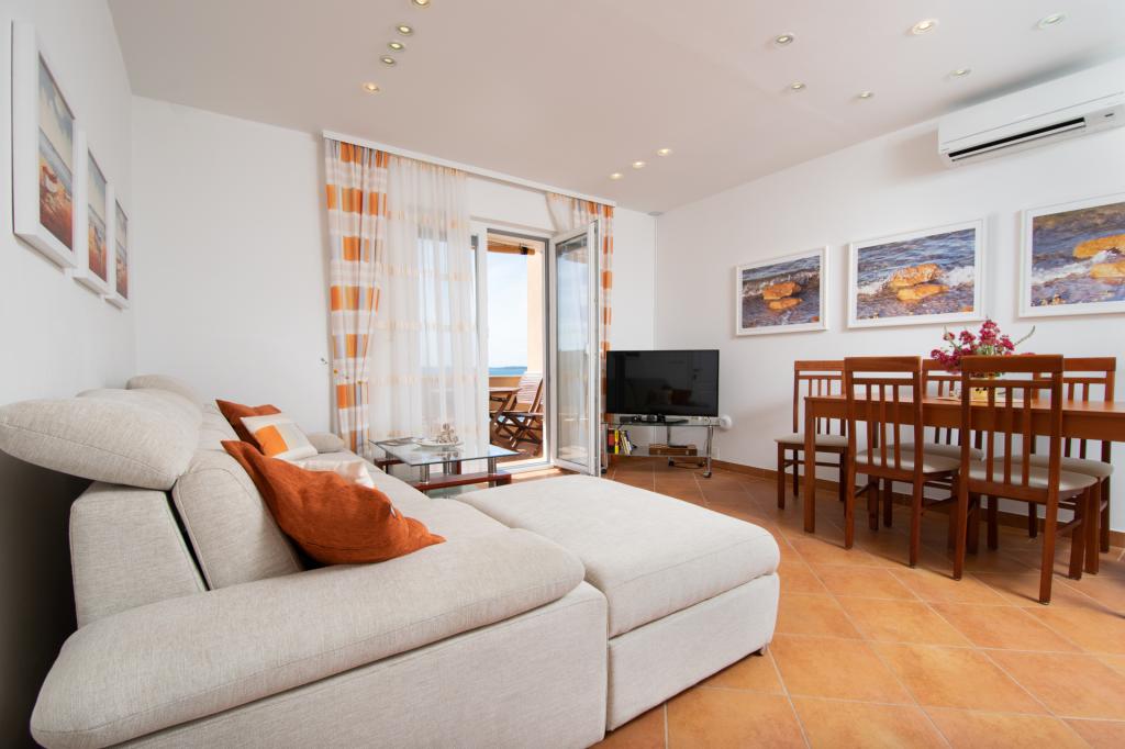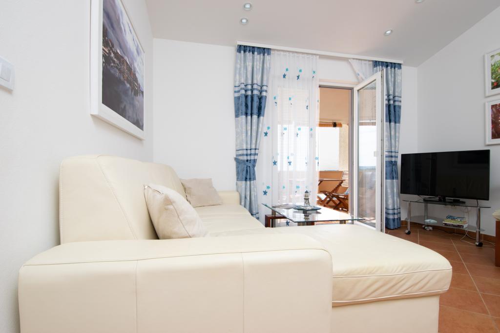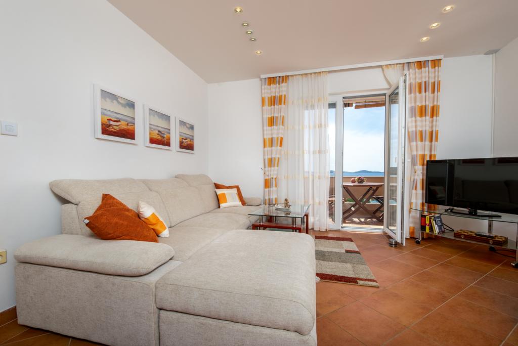 Luxe ingerichte appartementen aan het hoofdstrand van Lolić, in een rustige omgeving, hebben allemaal het Like home-certificaat. Elk appartement beslaat een verdieping van het huis en heeft een eigen ingang. Het appartement bestaat uit een inkomhal voor koffers, een grote woonkamer met keuken, een slaapkamer, een kleine hal en een badkamer. De woonkamer leidt naar een grote loggia met uitzicht op de zee en romantische zonsondergangen. Op de loggia staat een teakhouten tafel en stoelen. In de woonkamer staat een hoekbank die indien nodig kan worden omgebouwd tot twee bedden. Er is een grote LCD/IPTV. De keuken heeft servies voor 6 personen, vaatwasser, oven, 3/1 gas, grote koelkast met vriesvak, koffiezetapparaat, eettafel voor 6 personen. De ruimte is voorzien van airconditioning en verwarming. De inbouwkast in de gang is voorzien van een kluisje. De badkamer heeft een douchecabine, radiator, haardroger. De slaapkamer heeft een bed van 160x200 en 90x200 met anatomische matrassen en uitgang naar een kleine loggia E. Beddengoed en handdoeken voor de badkamer zijn aanwezig. Er zijn bordspellen, naald en draad, bescherming tegen muggen, strandstoelen, grill, douche op de binnenplaats