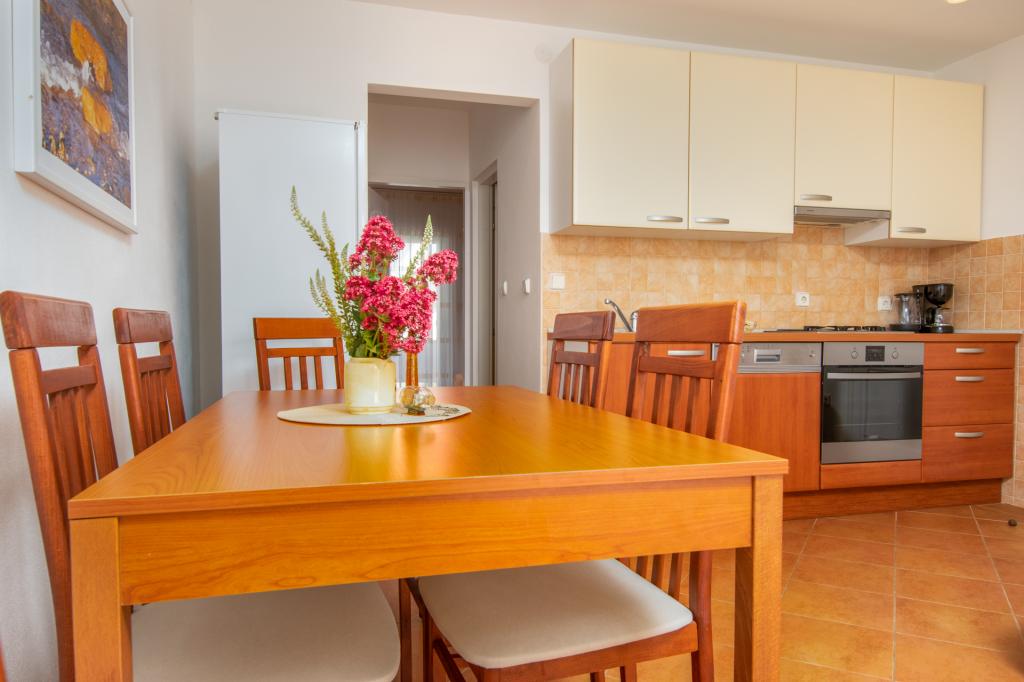 Mijn familie en ik hebben onze vakantie al twee keer in deze faciliteit doorgebracht. Het appartement is erg mooi, schoon, comfortabel en onderhouden. De keuken heeft alle benodigde apparatuur om maaltijden te bereiden. Vanaf het balkon is er een prachtig uitzicht over de zee. De omgeving is rustig, dus we raden het aan voor gezinnen en iedereen die een rustige vakantie wil. Mevrouw Andreja, ze stond altijd voor ons klaar, ze wist ons te adviseren als we iets nodig hadden. Ze verrukte ook de kinderen met pannenkoeken. We hielden vooral van de omheinde tuin, vanwaar het slechts een paar stappen is naar een zeer goed onderhouden strand. Op het erf genoten de kinderen van de schaduw en speelden onbezorgd, terwijl de ouders onbezorgd op de ligstoelen lagen, die de gasten ook mee naar het strand kunnen nemen. Wij raden aan!