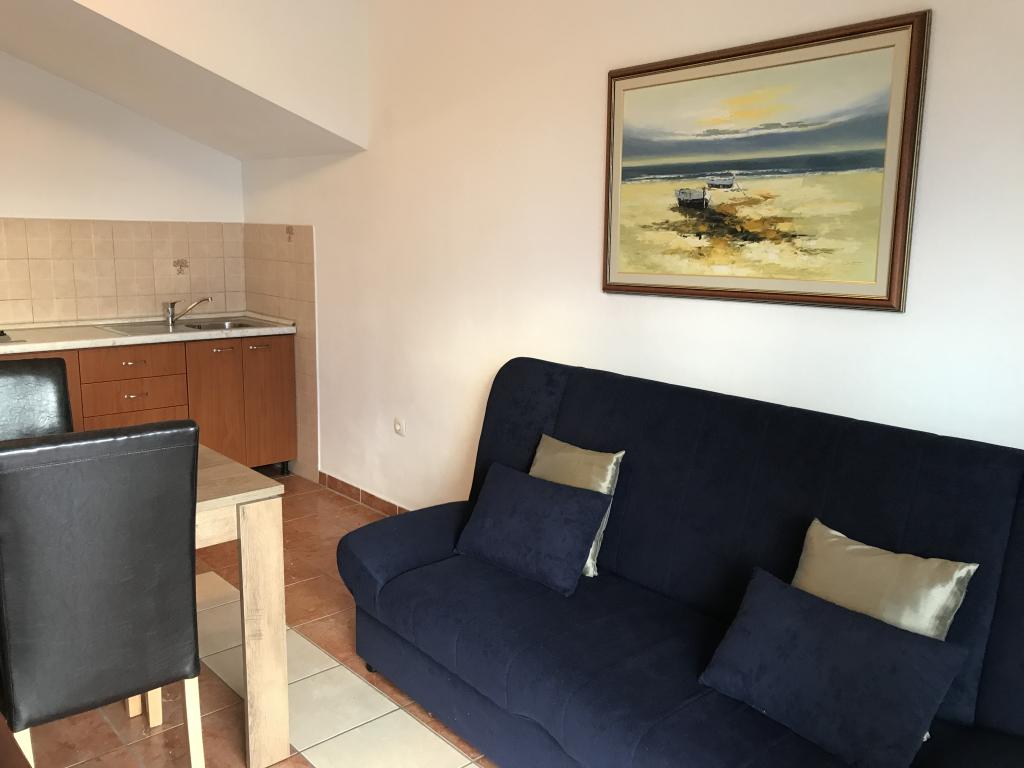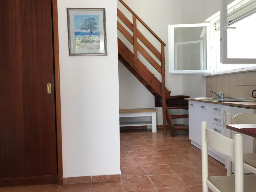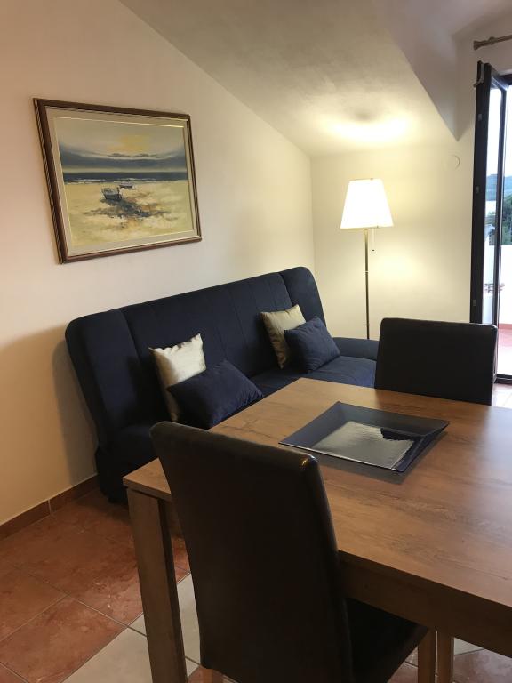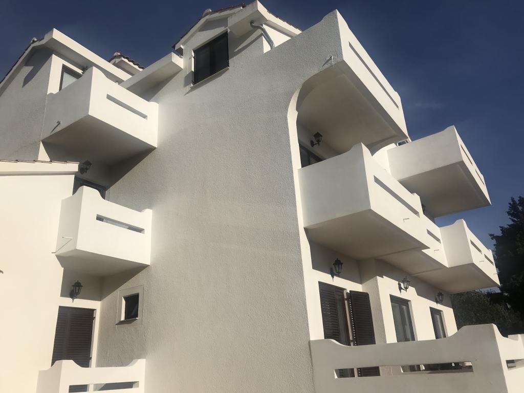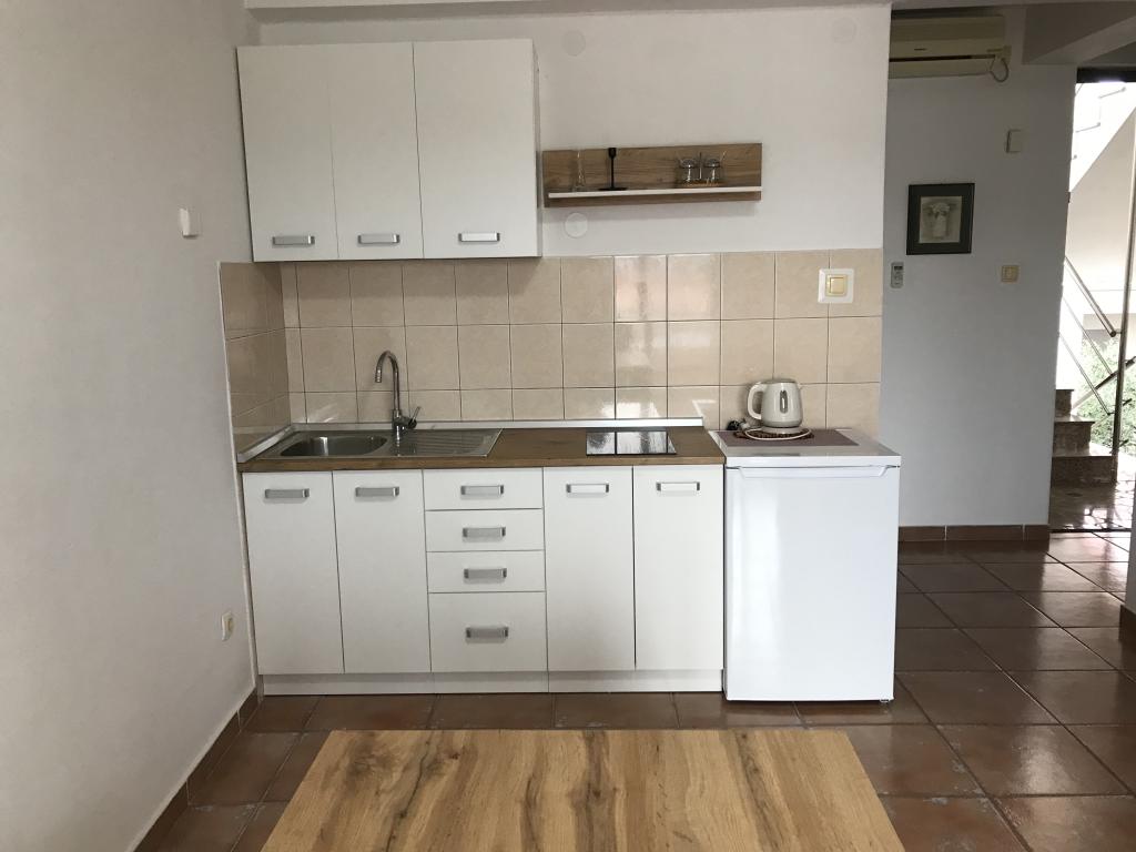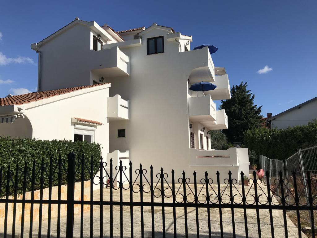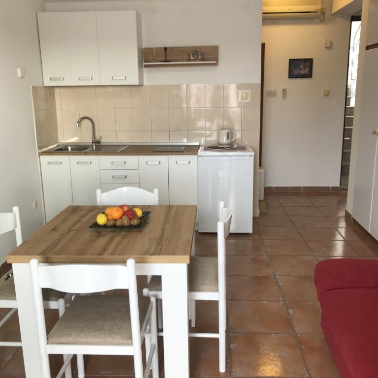 De appartementen liggen naast een dennenbos en het belangrijkste strand Lolić. Het belangrijkste strand ligt op 50 meter voor het huis. Het centrum van de stad ligt op een paar minuten lopen en biedt alle nodige voorzieningen. De ruimtelijkheid en eenvoud van de ruimte, vol licht en zon, met zicht op zee, vanaf de grote terrassen zorgen voor een gevoel van positieve energie en ontspanning. Alle appartementen zijn voorzien van airconditioning. Er zijn twee appartementen op elke verdieping en elk heeft een eigen aparte externe ingang. Het appartement voor vier personen heeft twee aparte slaapkamers (bedden 160x200), een grote woonkamer met keuken en een badkamer. In de woonkamer staat een bank die indien nodig kan worden omgebouwd tot bed (120x200). Appartementen voor twee personen hebben een aparte slaapkamer (bed 160x200), een woonkamer met keuken en een badkamer. In de woonkamer staat een slaapbank die gebruikt kan worden als bed 120x200. Het studio-appartement bevindt zich op de begane grond van het huis en heeft twee verdiepingen. Er is een slaapkamer op de eerste verdieping (bed 140x200). Op de begane grond bevindt zich een keuken, een badkamer en een groot terras.