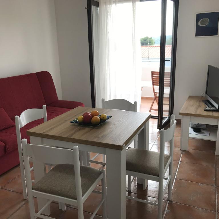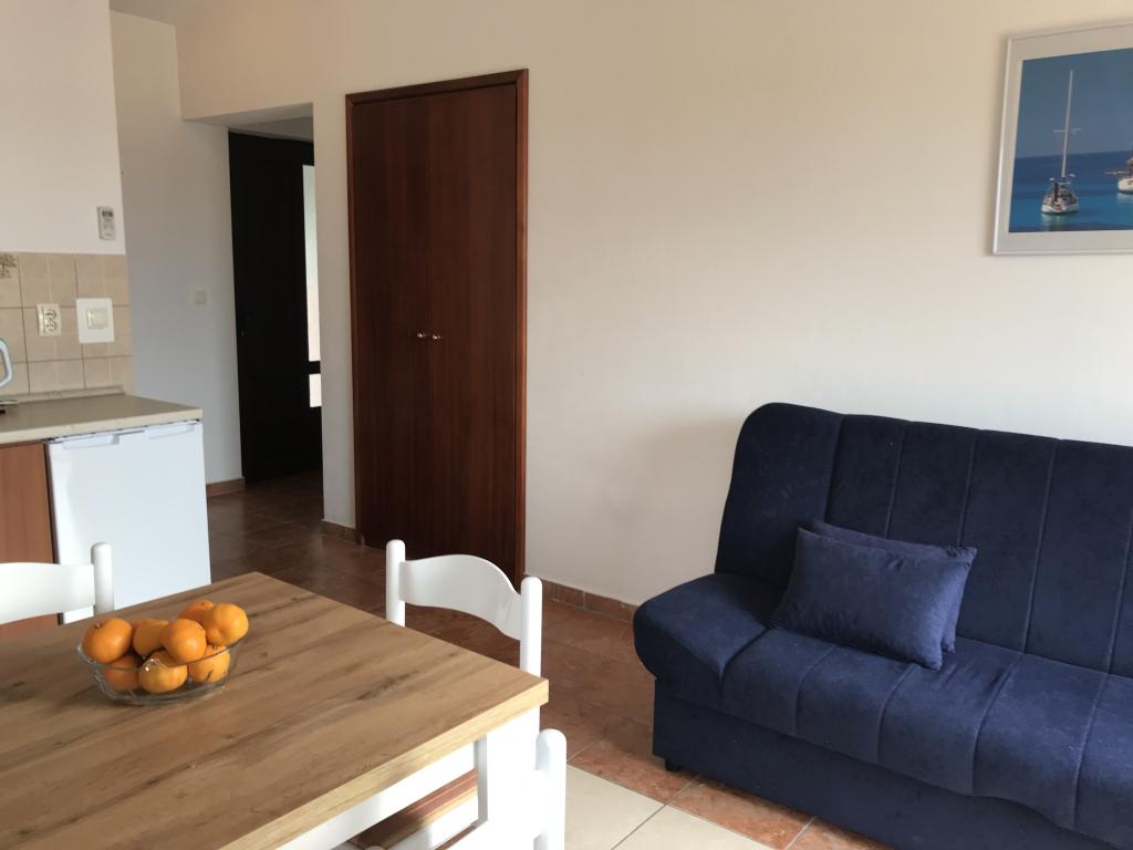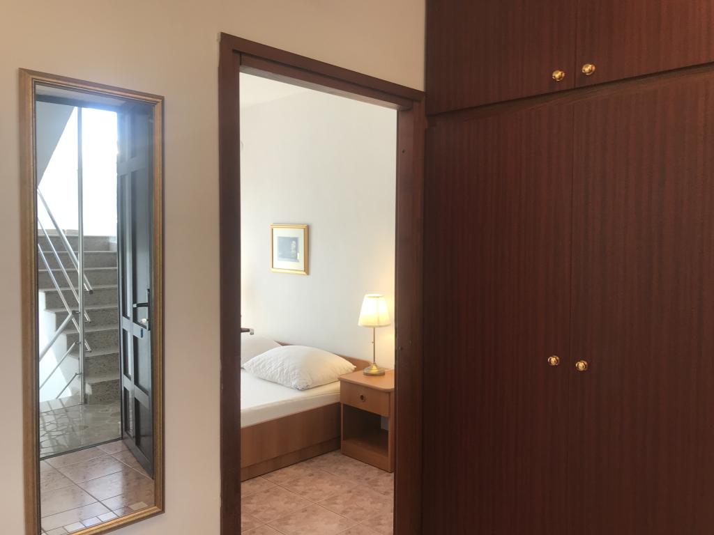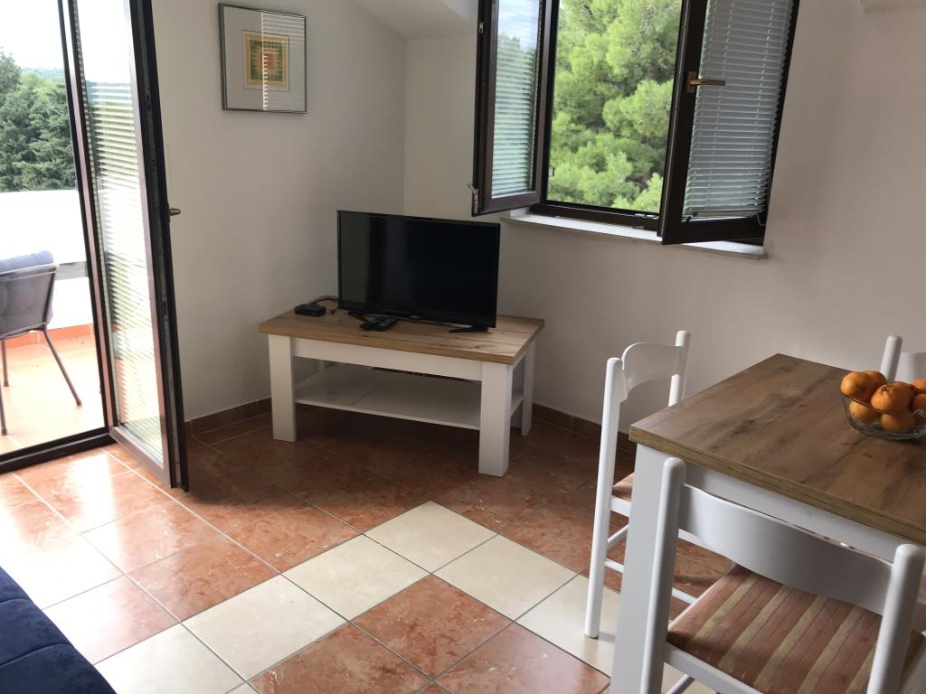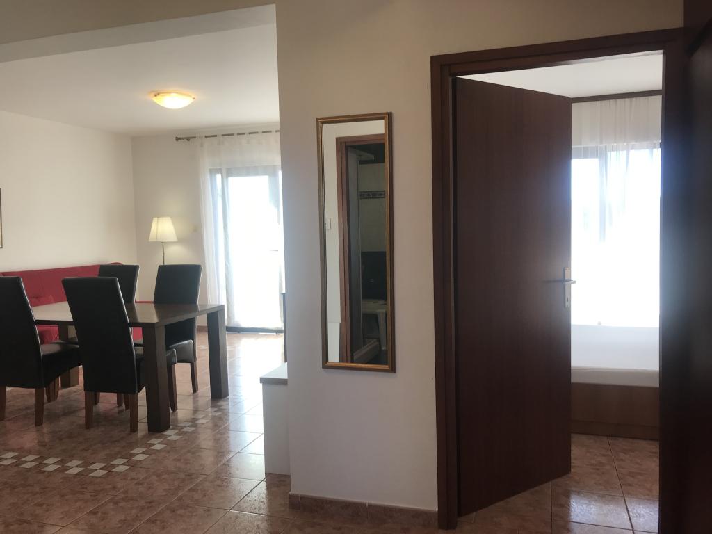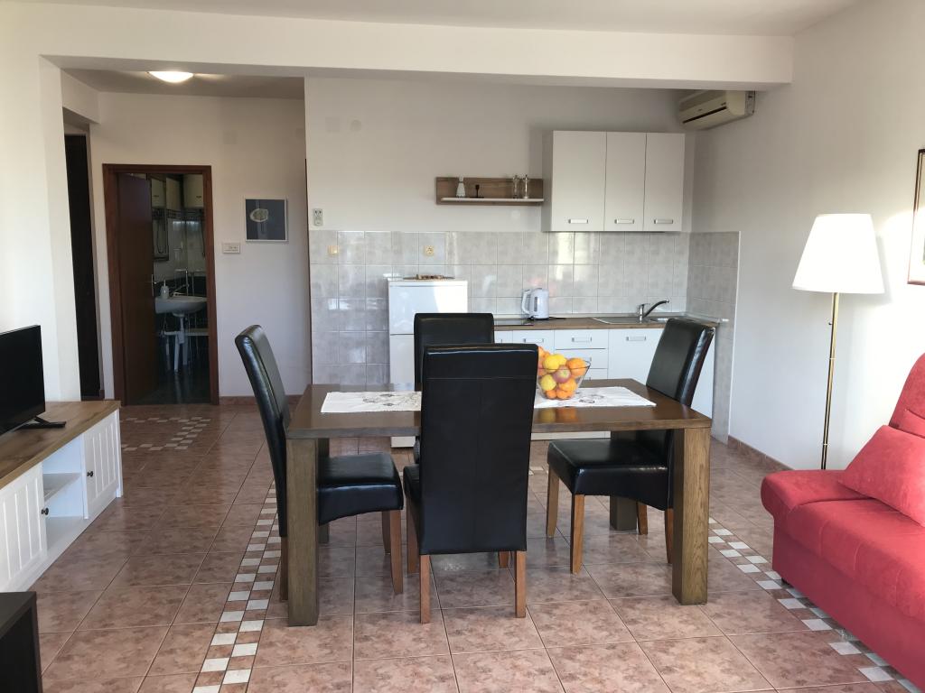 De appartementen liggen naast een dennenbos en het belangrijkste strand Lolić. Het belangrijkste strand ligt op 50 meter voor het huis. Het centrum van de stad ligt op een paar minuten lopen en biedt alle nodige voorzieningen. De ruimtelijkheid en eenvoud van de ruimte, vol licht en zon, met zicht op zee, vanaf de grote terrassen zorgen voor een gevoel van positieve energie en ontspanning. Alle appartementen zijn voorzien van airconditioning. Er zijn twee appartementen op elke verdieping en elk heeft een eigen aparte externe ingang. Het appartement voor vier personen heeft twee aparte slaapkamers (bedden 160x200), een grote woonkamer met keuken en een badkamer. In de woonkamer staat een bank die indien nodig kan worden omgebouwd tot bed (120x200). Appartementen voor twee personen hebben een aparte slaapkamer (bed 160x200), een woonkamer met keuken en een badkamer. In de woonkamer staat een slaapbank die gebruikt kan worden als bed 120x200. Het studio-appartement bevindt zich op de begane grond van het huis en heeft twee verdiepingen. Er is een slaapkamer op de eerste verdieping (bed 140x200). Op de begane grond bevindt zich een keuken, een badkamer en een groot terras.