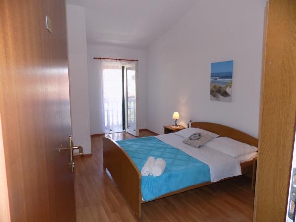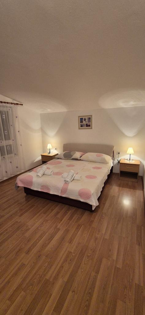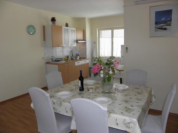 Appartementen Kristina liggen op slechts 150-200 meter van het centrum en het strand. Ze zijn vrij ruim en bieden talloze voorzieningen om gasten zich comfortabel en thuis te laten voelen. Alle drie de appartementen zijn volledig uitgerust met een keuken, woonkamer (alle banken zijn uitschuifbare bedden), airconditioning en satelliet-tv. Twee appartementen van 90 m² (op de 1e en 2e verdieping) zijn licht en luchtig, met een terras van 20 m² met uitzicht op zee en hebben twee ruime slaapkamers. Elke kamer heeft een eigen badkamer en een ventilator. Het appartement van 40 m² heeft een balkon van 5 m². Er is één slaapkamer van 15 m² met een eigen badkamer, airconditioning en een koelkast (in de gang). Gratis wifi is beschikbaar in het hele pand en in de gang bij de ingang bevindt zich een kleine bibliotheek (een plank met brochures, boeken in verschillende talen en tijdschriften). Er is een grote parkeerplaats voor het huis. Voor reserveringen, voorwaarden en meer, zie de opmerkingen. De reserveringskalender is bijgewerkt. We kijken uit naar uw komst!