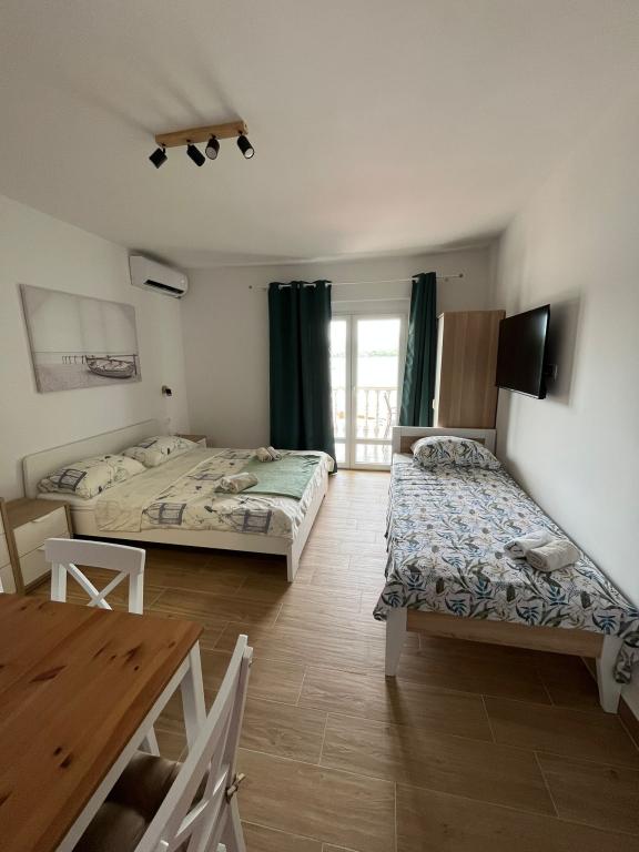 Appartementen eerste rij naar de zee. Alle appartementen hebben ruime terrassen met uitzicht op de zee. Verschillende appartementen met verschillende capaciteit. Op het strand, zonder autoverkeer, is een strand ideaal voor kinderen. Mogelijkheid om buitendouche en grill te gebruiken. Aan de voorzijde van het huis is een kleine strandbar.