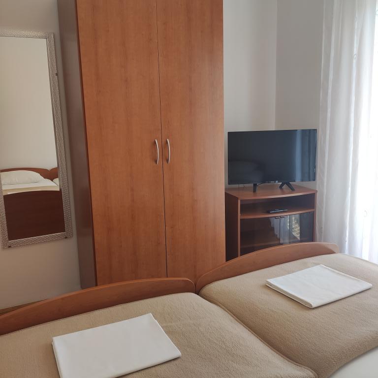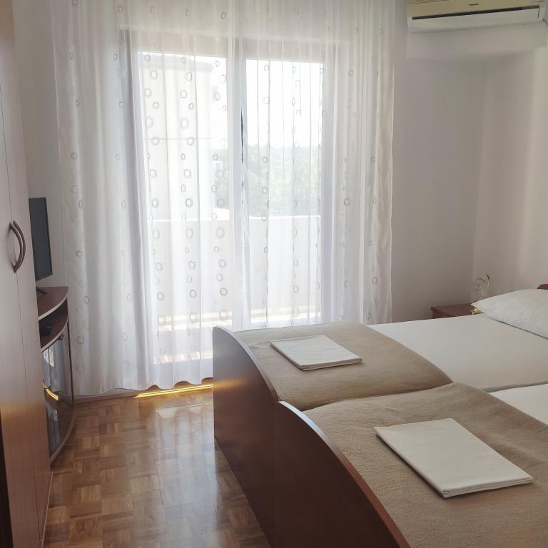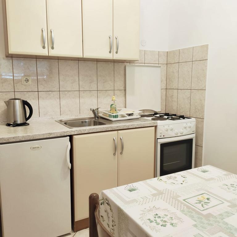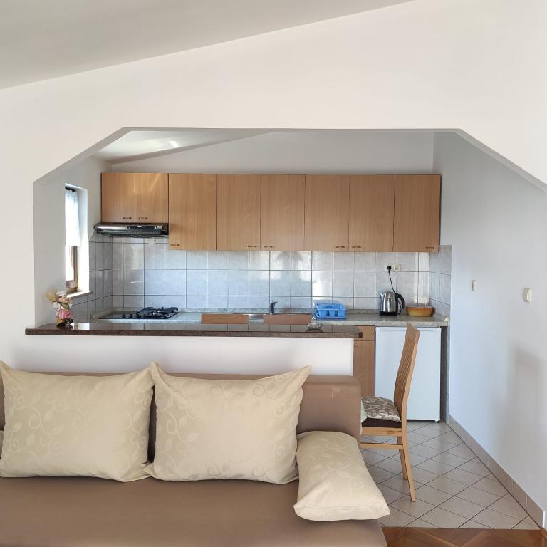 Volledig en modern ingerichte appartementen nabij het centrum van Pirovac, gelegen op de eerste rij aan zee; De accommodatie ligt op 5 minuten lopen van het centrum en op 5 minuten lopen van het strand.