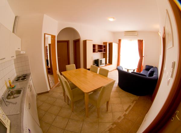 Inlusief niet Toeristenbelasting.Huisdieren zijn welkom, hiervoor geldt een toeslag van 12 euro per huisdier per dag. De toeristenbelasting bedraagt 2,00 euro per persoon per dag; voor kinderen tussen 12 en 18 jaar is de toeristenbelasting 1,00 euro per persoon per nacht (kinderen jonger dan 12 jaar betalen geen toeristenbelasting). De appartementen zijn van het type A2+2, A4+2 en A6+2. Voor de tweepersoons slaapbank in de woonkamer wordt 18 euro per persoon per dag in rekening gebracht. Bij een verblijf van minder dan 7 nachten geldt een hogere prijs. Babybedje op aanvraag - gratis.