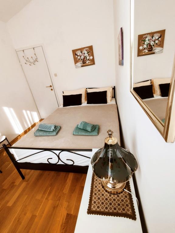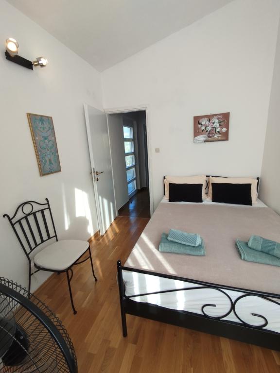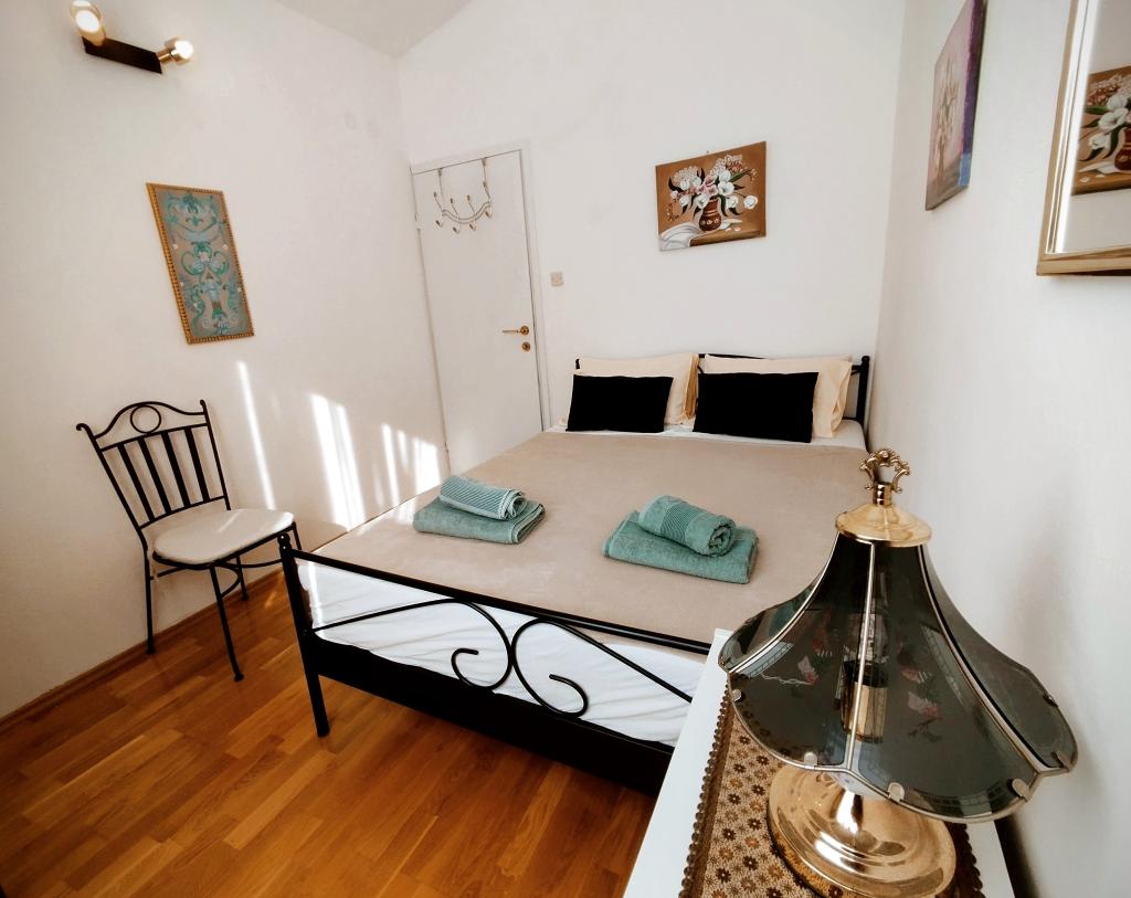 Inlusief niet Toeristenbelasting.De appartementen zijn gelegen in de kleine en rustige baai van Vrilo direct aan zee, het appartement van 50 m2 heeft twee kamers met twee en drie bedden, tv, wi-fi, airconditioning, keuken, badkamer, terras aan zee, aparte ingang , grillen in de tuin. Het appartement is geschikt voor een gezin met kinderen. Het Starine-strand ligt op 2-3 minuten lopen van ons, wat we op onze foto's hebben laten zien. Tijdens het zomerseizoen staat Pirovac bekend om het evenement Pirovac Culturele Zomer, waar vis-, folkloristische en bluesavonden, ezelraces en klapa-bijeenkomsten worden gehouden.