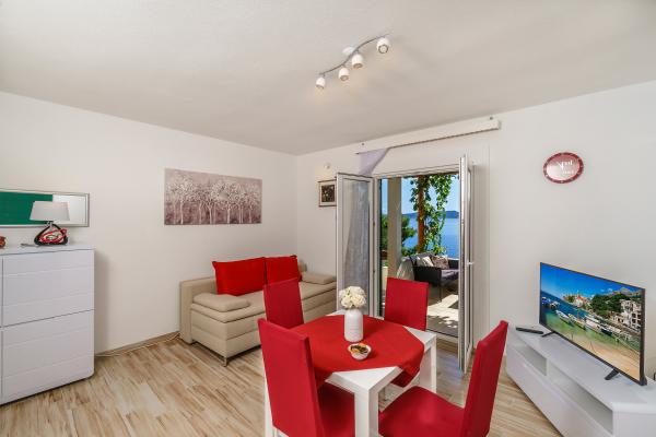 Het appartement is perfect schoon, alles is functioneel en komt echt overeen met de foto's in de advertentie. Vanaf het terras is er een prachtig uitzicht op de zee en in de verte zie je het eiland Brač. Het appartementencomplex heeft een eigen terras met toegang tot de zee, die bereikbaar is via een trap. Na ongeveer 3 minuten lopen komt u bij nog twee mooie en rustige stranden. Het water is kristalhelder met veel vissen - ik raad aan om een duikbril te nemen. We waardeerden het enorm dat de boten en cruiseschepen ver van het strand varen en geen last hebben van lawaai. De eigenaren, Jan en Jelena, zijn erg aardig en behulpzaam, ze proberen overal rekening mee te houden. Ik wens hen alleen het beste voor de toekomst. Ik zal dit appartement graag aanbevelen aan al mijn vrienden.