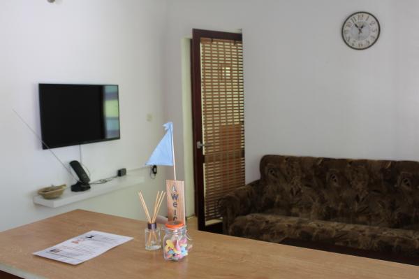 We hadden een geweldig appartement, of, zelfgemaakte wijn, uitzicht op zee, WiFi, vrede, slaap, voeding en zee!