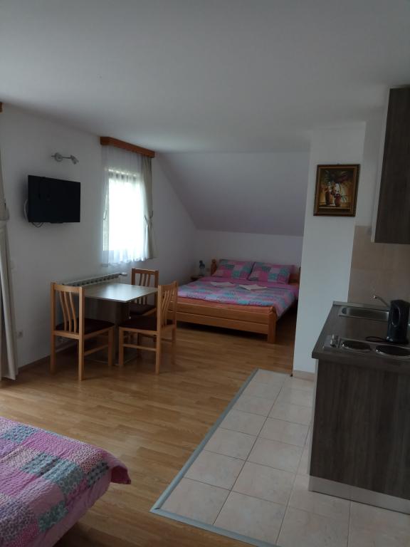 Apartments Dale ligt in het rustige dorpje Smoljanac, op slechts 7 km van de Plitvicemeren. Studio-appartementen bevatten een kamer met 1 tweepersoonsbed en 1 slaapbank, en zijn geschikt voor gezinnen met twee kinderen, badkamer met douche, keuken en satelliet-tv. In het hele gebouw is gratis internet beschikbaar. Parkeren is bij de prijs inbegrepen en bevindt zich voor het huis. In deze appartementen ontdekt u een unieke sfeer en een plek waar u heerlijk zult vertoeven, genieten van de natuur en ontspannen. In de winter is het geschikt om te sleeën en in de zomer om te zwemmen in de Korana rivier. Naast het Nationaal Park Plitvička Jezera zijn er ook de Barac-grotten en Rastoka bij Slunj.