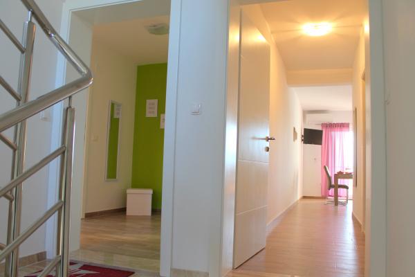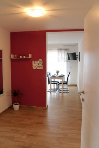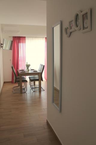 Moderne appartementen in het centrum van Podaca aan de Makarska Riviera. Een mooi kiezelstrand ligt op 100 meter van het huis. De appartementen zijn ideaal voor gezinnen met kinderen. Binnen 20 meter is er een café, winkel, De supermarkt, speeltuin, park en een waterglijbaan. Naast het huis is er een weg naar het oude dorp waar u de kerk kunt bezoeken uit 1963. Ideaal voor natuurliefhebbers. Dankzij de uitstekende vervoersverbindingen, de gasten zijn in staat om te gaan op dagtochten (Dubrovnik, Mostar, Makarska, Split, Medjugorje, de monding van de rivier Neretva, Baćina Lakes Peninsula ..) Elk appartement heeft een oppervlakte van 50 m2 en bestaat uit de volgende prosotrija: woonkamer met keuken en eetkamer, hal, badkamer, slaapkamer met bijbehorende toilet en een balkon. Parkeren is omheind en is gelegen binnen het gebouw. Alle appartementen zijn voorzien van airconditioning, TV / satelliet (woonkamer), wi-fi, koffiezetapparaat, kluis. .