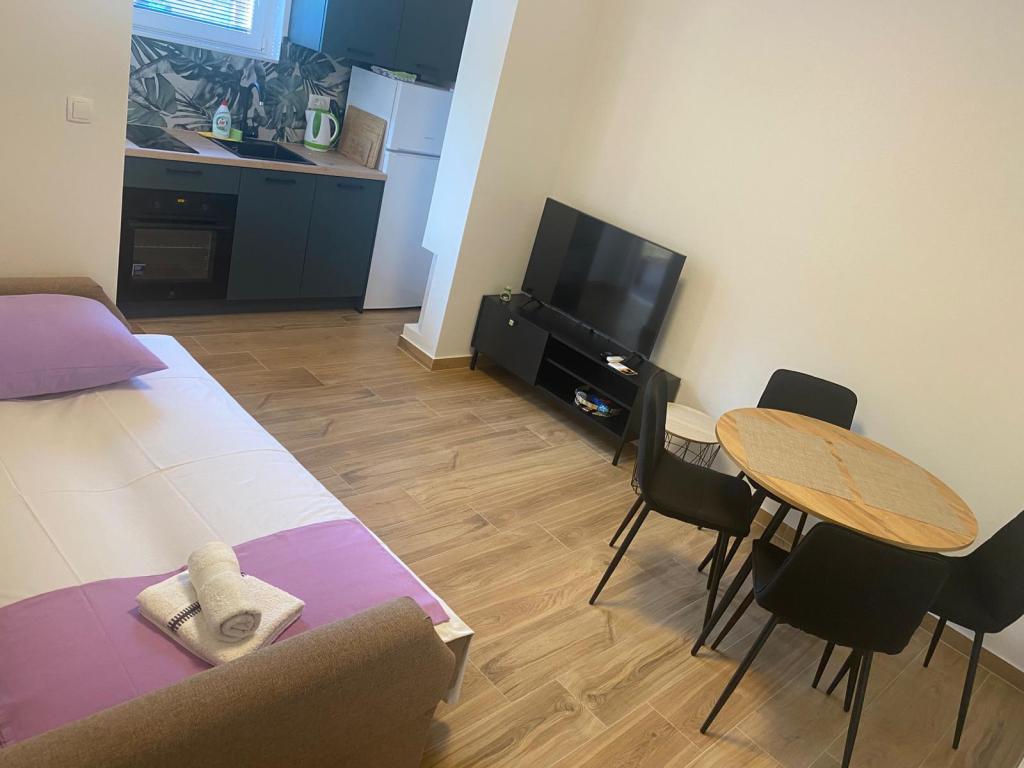 Geniet van een perfecte zomervakantie in ons comfortabele appartement aan de Makarska Riviera in het stadje Podaca, met een heldere zee, een mild klimaat en prachtige stranden. Ideaal voor een aangename en rustige familievakantie, en de perfecte geografische ligging biedt mogelijkheden voor dagtochten naar nabijgelegen steden: Dubrovnik, Mostar, Makarska, Split, de monding van de Neretva, de Baćinska-meren, Medugorje, de Kravica-waterval, evenals het eiland Hvar, Korčula en het schiereiland Peljesac. Gasten hebben de beschikking over een groot terras met een barbecue op de begane grond, ideaal om te socializen en uw favoriete gerechten buiten te bereiden. Het appartement beschikt over gratis wifi, airconditioning en een beveiligde parkeerplaats. Het strand ligt op slechts een paar minuten lopen en in de buurt vindt u een bakker, winkel, restaurant, sportvelden voor basketbal en voetbal, evenals een kinderpark voor de jongste leden van uw gezin.