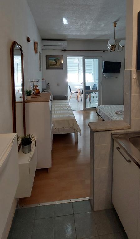 Accommodatie is netjes, schoon, dichtbij 2 mooie stranden, dichtbij de markt, met een parkeerplaats. Lekker rustige plek om met kinderen te relaxen. Mevr. Višnja is heel aangenaam en vriendelijk. Lof!