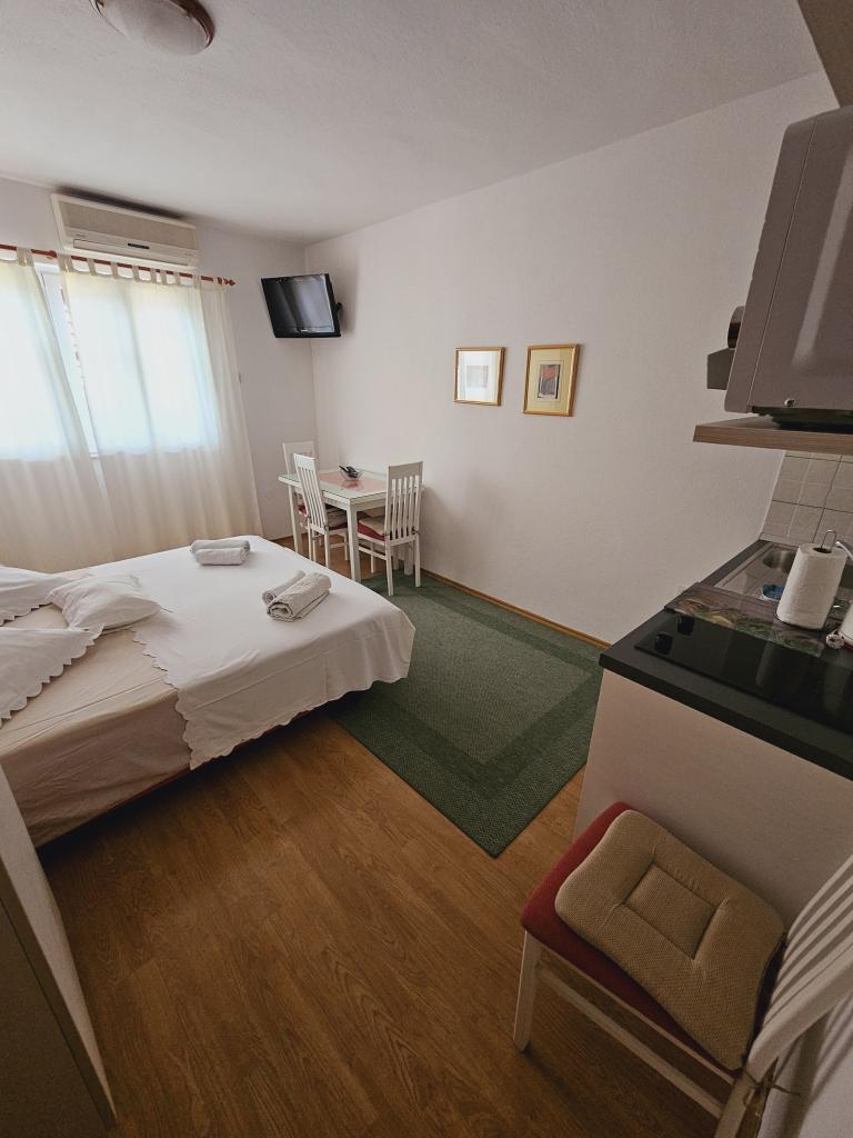 Inlusief niet Toeristenbelasting. Boekingsbevestigingsdocument bij reserveringDe accommodatie was absoluut geweldig. Ik raad de eigenaren aan om een video over de accommodatie te maken, want in werkelijkheid zag de accommodatie er nog beter uit dan op de foto's. De kamers waren voorzien van airconditioning en een plafondventilator, alles was prachtig schoon en netjes. We kregen na een week extra schone handdoeken, de eigenaren waren geweldig, behulpzaam en hielpen met het onderhoud van onze auto, die we aan de snelweg hadden laten staan. Ik raad het zeker aan en we vonden de trap naar het strand niet erg. Ik beschouwde het als een workout. Veel kleine strandjes, 's avonds levendig, maar ook rustig, winkels, vlakbij Makarska met grotere winkels. Voor mij een uitstekende locatie. We waren hier met een gezin met drie kinderen en met opa. We hebben de kinderen sprookjes in onze taal laten zien op Netflix, het appartement had twee keukens en vooral twee toiletten, wat geweldig was.