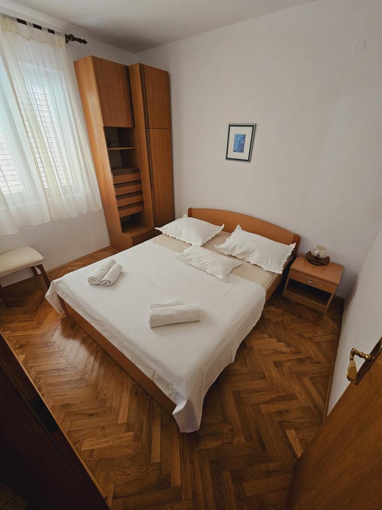 Dit klassiek ingerichte appartement in een gezinswoning is gelegen in een rustige buurt van Podgora, op slechts vijf minuten aangename wandeling van het centrum en 50 meter van het strand. Dit appartement met airconditioning, 4 comfortabele slaapkamers, 2 badkamers en 2 keukens, en parkeergelegenheid biedt alle voorzieningen voor een perfecte zomervakantie. Naast de accommodatie ontvangt u ook alle nodige informatie en diensten voor een optimale vakantie in onze prachtige stad.