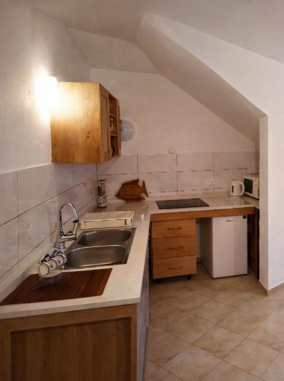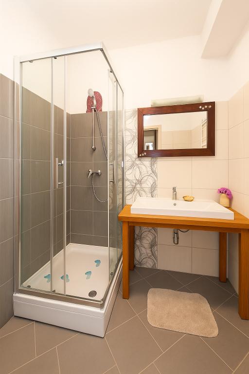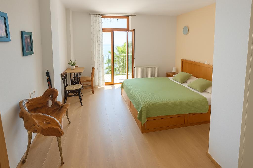 De appartementen zijn prachtig: een prachtig uitzicht vanuit het raam, goed meubilair, sanitair, voldoende afwas. 'S Avonds was het leuk om te zitten op het balkon en kijk naar de zee. Vriendelijke gastheren, hielpen ons enorm. In de buurt van de appartementen het beste strand in Podgora: brede, ondiepe kiezels, dennen, helder water, weinig mensen.