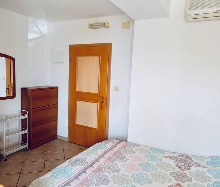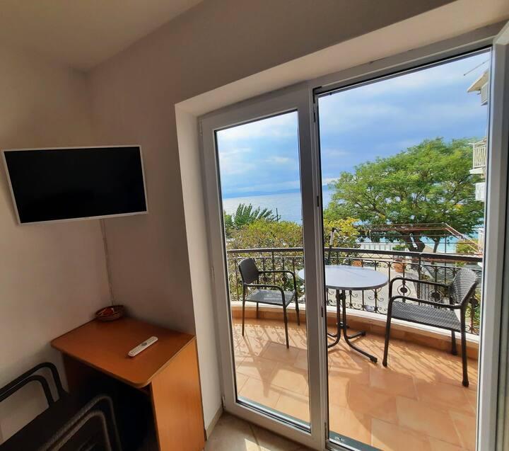 Prachtig appartement met een ruim balkon en een prachtig uitzicht op zee, op een steenworp afstand van het strand. Aardige eigenaar. Wij raden het aan.