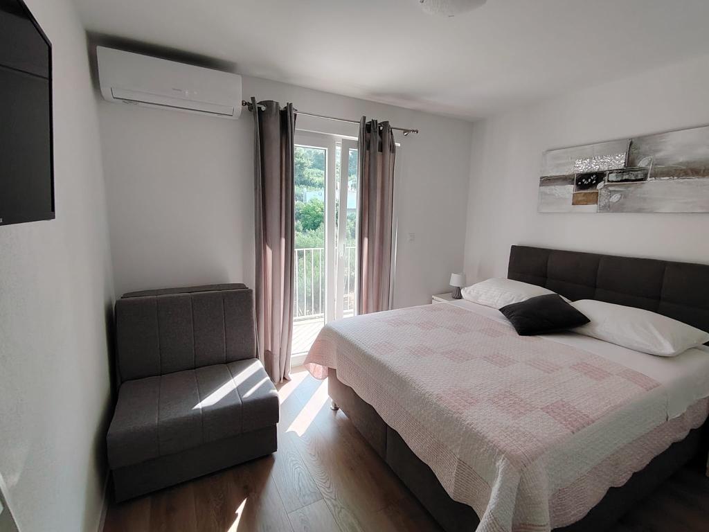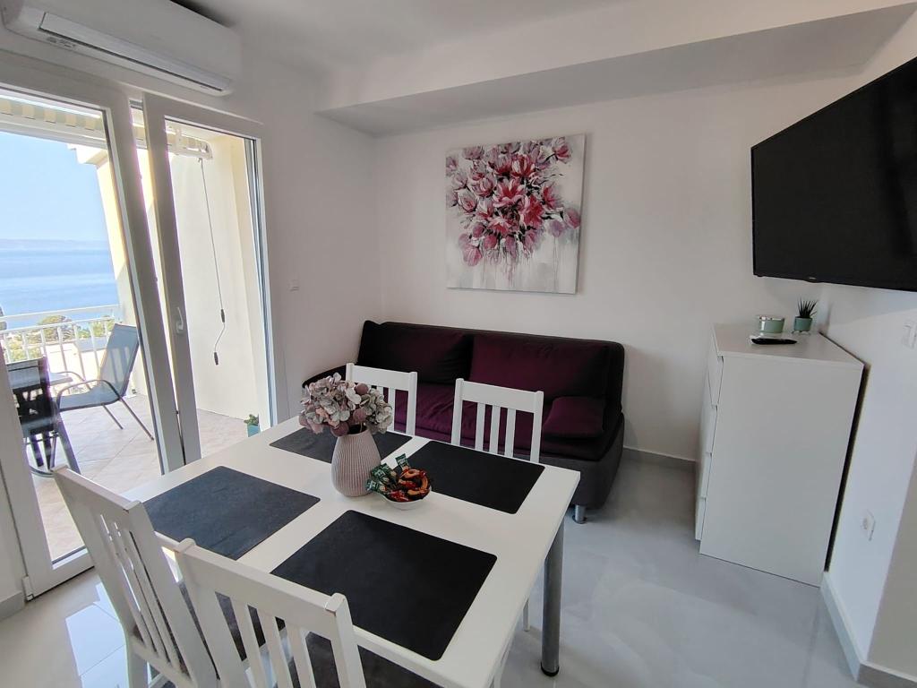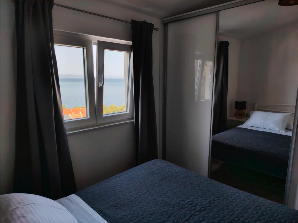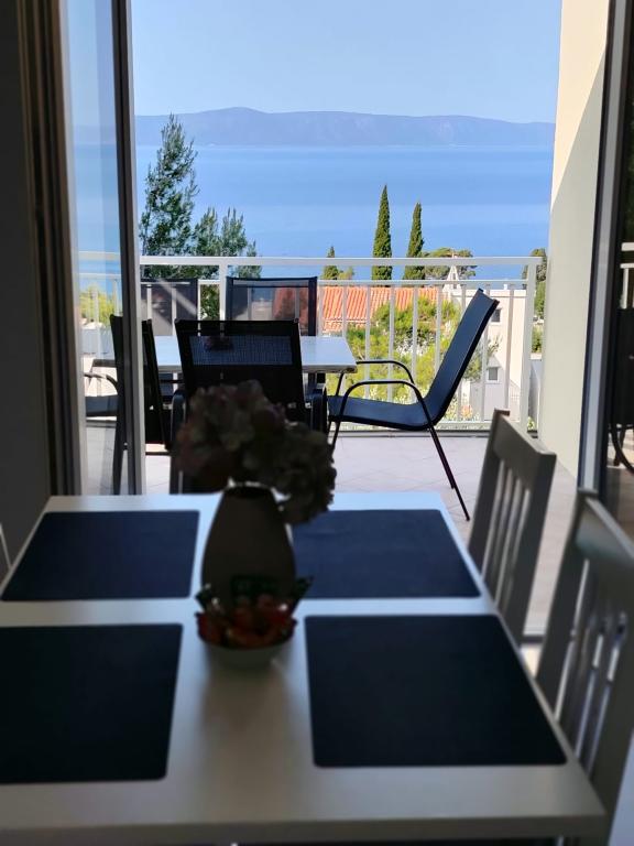 Zeer mooie zitplaatsreservering, groot appartement en balkon met een prachtig uitzicht op de zee, de eilanden Hvar en Brac en de bergen. Alles in overeenstemming met de foto's. De gastheren zijn erg aardig, gastvrij, altijd glimlachend en behulpzaam. We raden het ten zeerste aan