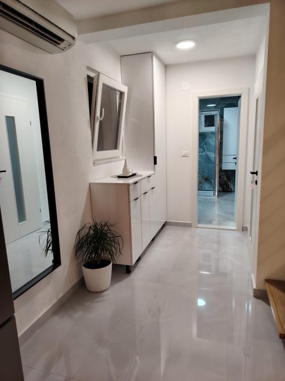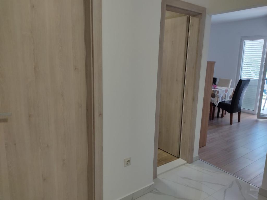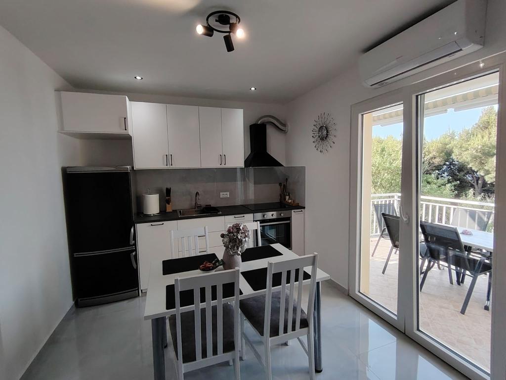 Het appartement is erg mooi, schoon en ruim, uitgerust met een vaatwasser en wasmachine, wat een groot pluspunt is. Prachtig uitzicht vanaf het terras op de zee en de eilanden Hvar en Brac. De eigenaren Iva, Ante en Tinka zijn erg aardig, beleefd en behulpzaam, een welkomstdrankje en snoep voor kinderen. We zijn de 3e keer in dit appartement en ik raad het met heel mijn hart aan. 5 minuten lopen naar het strand, over de brug over een drukke straat, tussen olijfbomen.