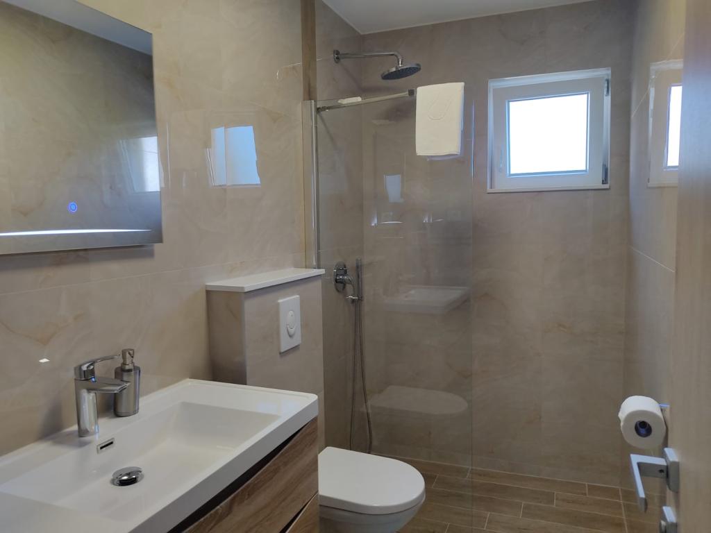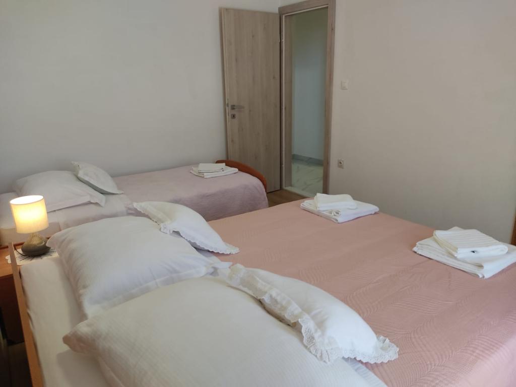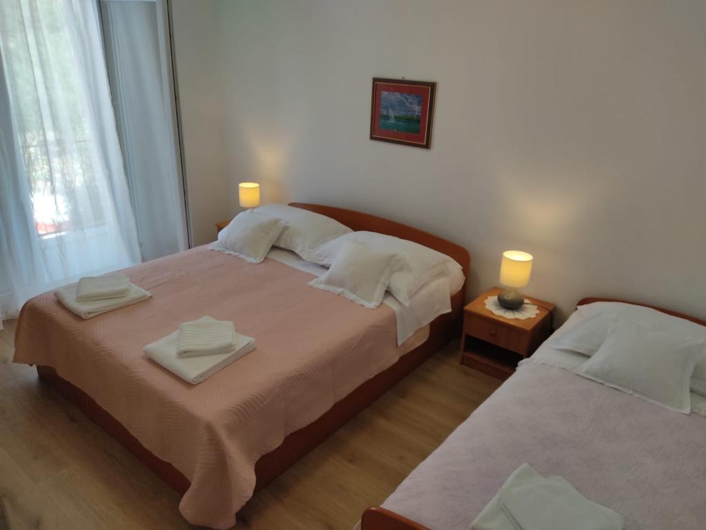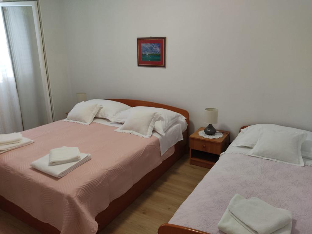 Tot nu toe zijn de beste accommodatie in Kroatië. (En dit is onze 10 keer) Appartement 8 + 1 - zeer ruim, schoon, met airconditioning (3xAC) beschikbaar 2 keukens, 2 koelkasten (wat met zo veel mensen is erg handig) keuken uitgerust met alles wat je nodig hebt, 2 badkamers (douche, bad), en het allerbelangrijkste, fantastisch terras met een prachtig uitzicht op de zee, de bergen, de stad. Hoewel google maps niet de weg wijzen naar het strand dan maak je geen zorgen ... :) waar pittoreske pad tussen de olijfbomen en de aangrenzende huizen (afdaling duurde 7 minuten). Zeer ruime kamers met grote bedden en kasten dingen, kijken uit op de twee grootste terras, balkon op twee meer in de richting van de bergen. Het allerbelangrijkste - geweldige eigenaars, zeer vriendelijk en behulpzaam. Al heb ik niet ontmoet zo gastvrij en behulpzame mensen, die reageren op een suggestie, verzoek, onderzoek. Aanbevolen 100%