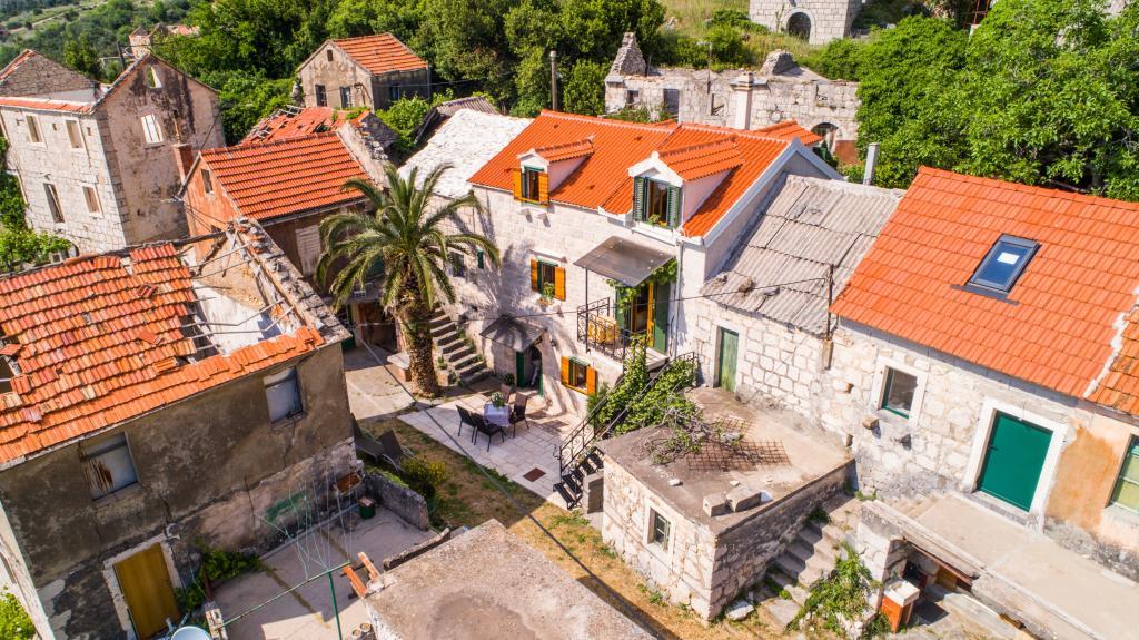Een oud stenen huis, volledig gerenoveerd in traditionele Dalmatische stijl, om aan al uw vakantiebehoeften te voldoen, en het zal zeker uw hart en ziel raken. Gebouwd in 1706 , en vervolgens tijdens de invasie/bezetting van Napoleon, 1806. in brand gestoken, en ten slotte in 2006-2010 met zorg en liefde gerestaureerd door de eigenaar, steen voor steen. Het huis heeft zijn eigen verhaal en de gastheer vertelt het u tijdens de gastvrijheid/met een welkomstdrankje. Twee slaapkamers zijn ruim 25m2, met stenen muren, hoogwaardig houten meubilair, met twee badkamers, ingerichte keuken met woonkamer en toilet. Voor het huis is een tuin en een terras met een barbecue en ligstoelen om uit te rusten. Satelliet-tv. Internet, airconditioning, vaatwasser, wasmachine, magnetron, bibliotheek met boeken (50). Laat ons huis uw thuis zijn, geniet ervan en houd het als uw eigen huis. Het heeft een prachtig uitzicht op de zee en de eilanden Hvar, Brač, Korčula en het schiereiland Pelješac, evenals goddelijke zonsopgangen en zonsondergangen.