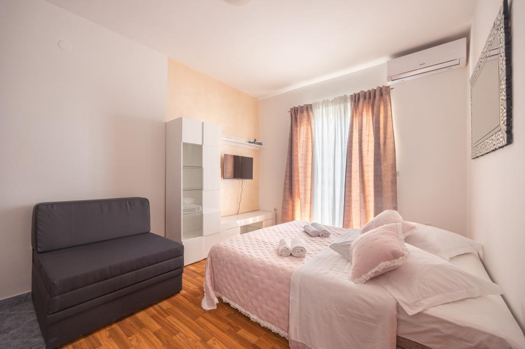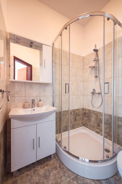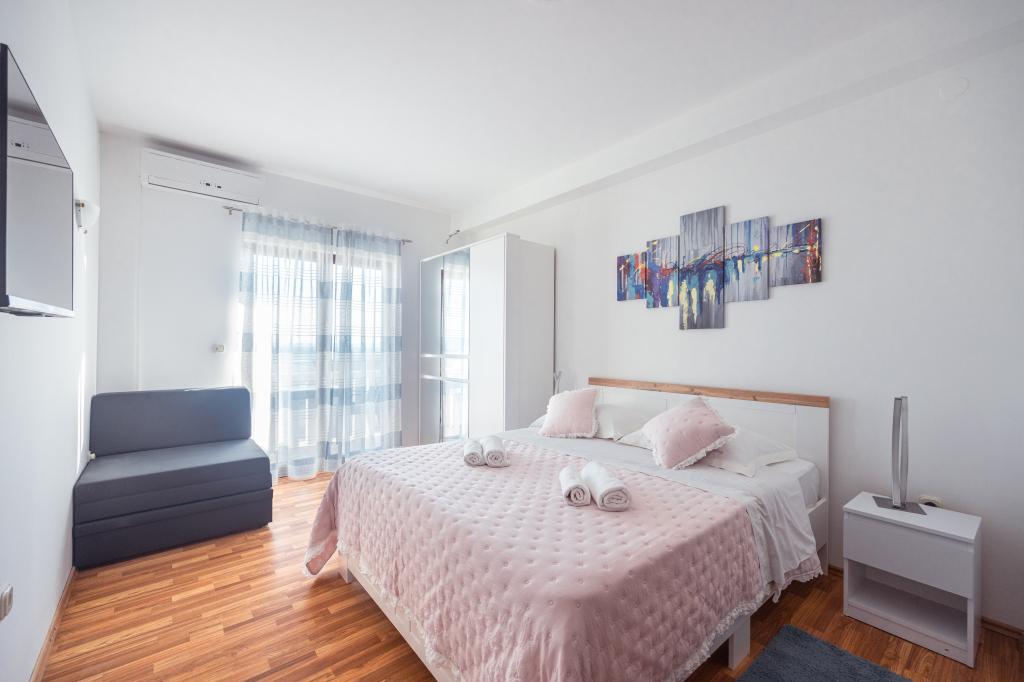 Volledig ingerichte appartementen Baki is gelegen in een rustige plaats Podstrana, op slechts 8 km afstand van Split. De appartementen zijn uitgerust met een lcd-tv / SAT en air-conditioning, die is inbegrepen in de prijs evenals lokale belastingen. De inrichting is gelegen op 30 m van het strand en de zee, want de metro's niet nodig om de weg over te steken. Op de begane grond is er een winkel Ribola en ATM.