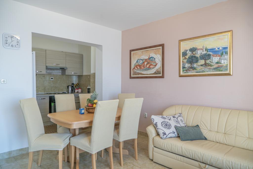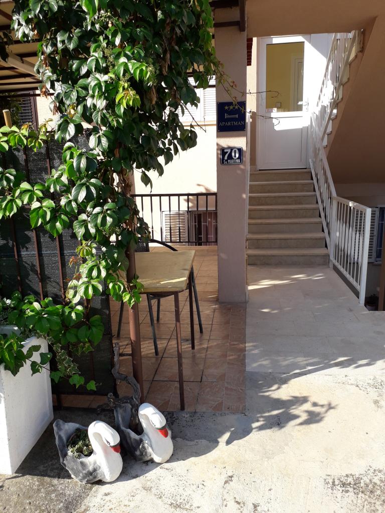Volledig uitgerust appartement, met twee slaapkamers, twee airconditioners, wi fi groot balkon, eetkamer en keuken en een ruime badkamer.Het is gelegen in Sv. Martin Podstrana naar de zee, met een prachtig uitzicht op de eilanden en de stad Split. Het strand is kiezelstrand, geschikt voor zwemmende kinderen met een grote promenade aan zee. Het is ideaal voor gezinnen met kinderen omdat de weg niet wordt overgestoken. De tuin is omheind waar er parkeergelegenheid en een barbecue is. In de buurt zijn er winkels, restaurants, pizzeria's, koffiebars, winkels, dokter, apotheek en tandartspraktijk, in de buurt van Split met door UNESCO beschermde culturele monumenten - Sibenik, Trogir, Solin en Omis. Appartement s is groot en comfortabel en heeft 4 ligstoelen. Het appartement is ruim en comfortabel met een groot balkon-terras parasols met prachtig uitzicht op zee op slechts 30 meter van de zee kom en zie het zelf. nabijgelegen tennisbaan, paardrijclub, fietspaden, boottochten naar nabijgelegen eilanden, lokale gerechten, verse vis, schaaldieren en andere specialiteiten prijsbureau