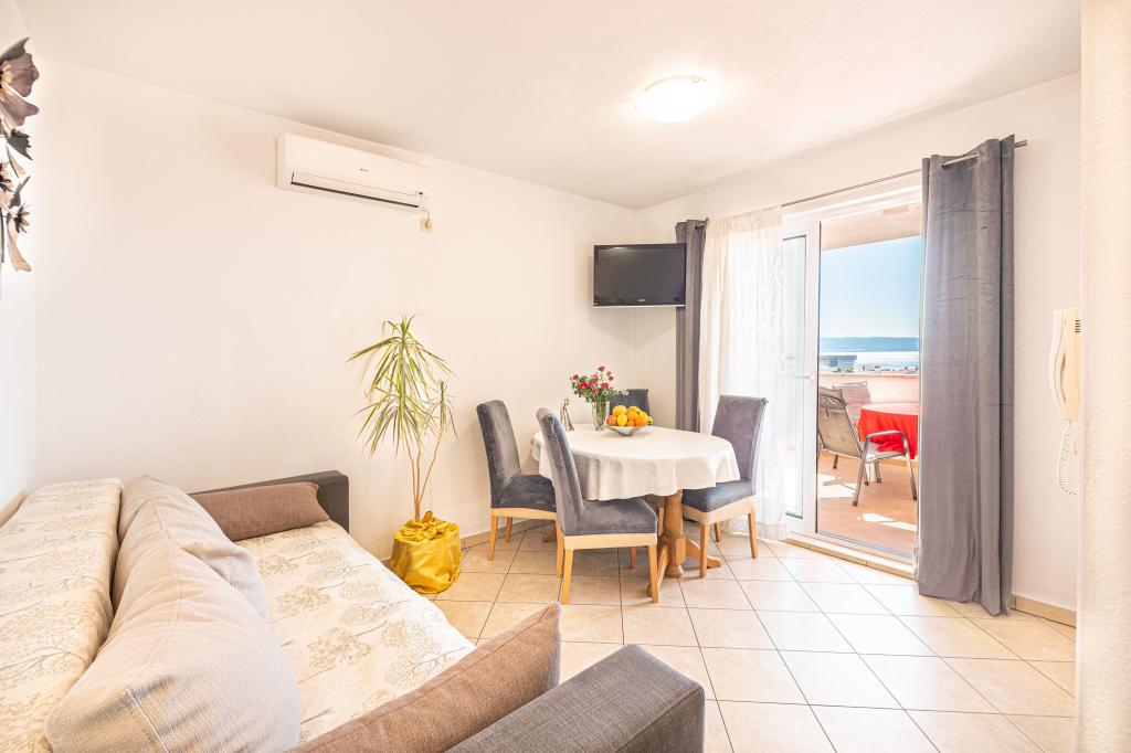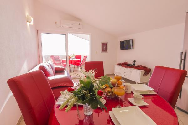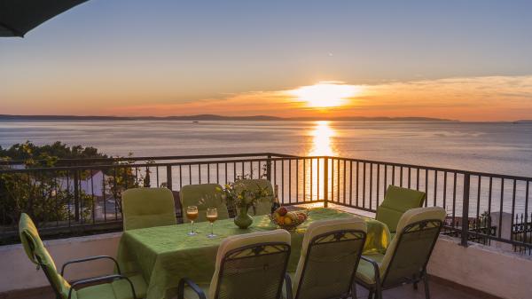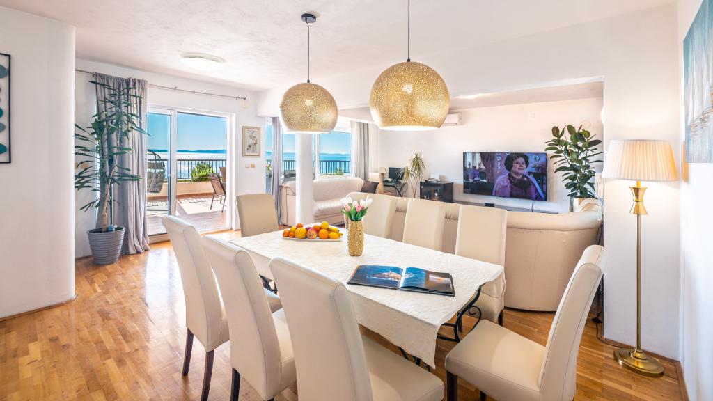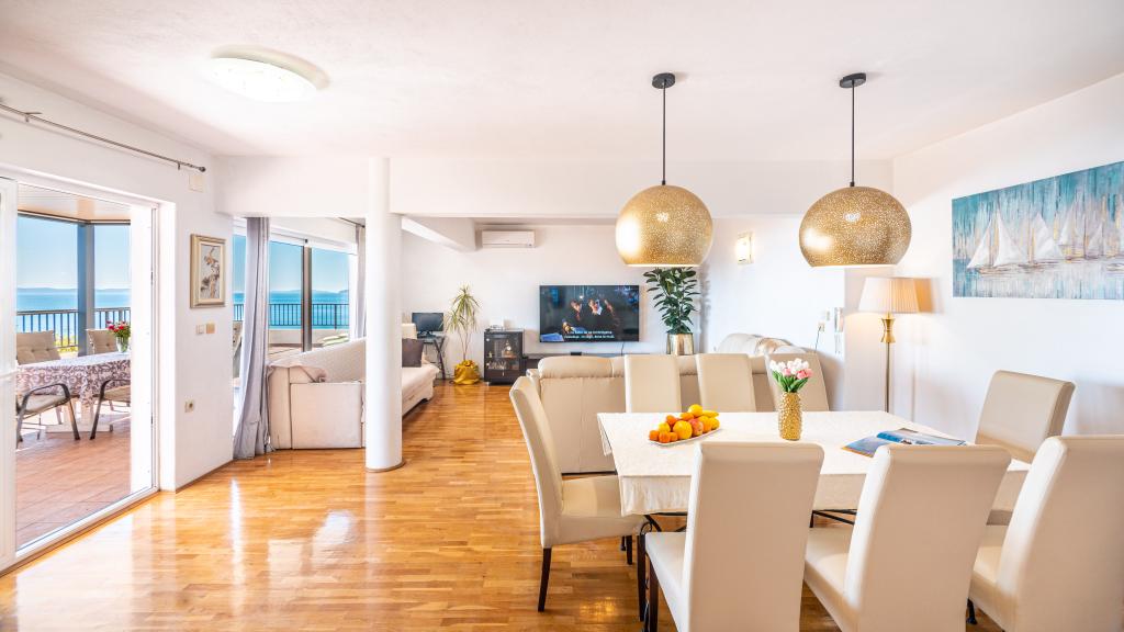 Het appartement is gelegen in het rustige toeristische stad van Podstrana, zeer dicht bij de zee. Alles is dichtbij, winkels, vismarkt, supermarkt, geld wisselen, sportcentra, golfbanen, hotels, restaurants. Het appartement heeft een groot terras met een prachtig uitzicht over de zee, eilanden en zwemmers.