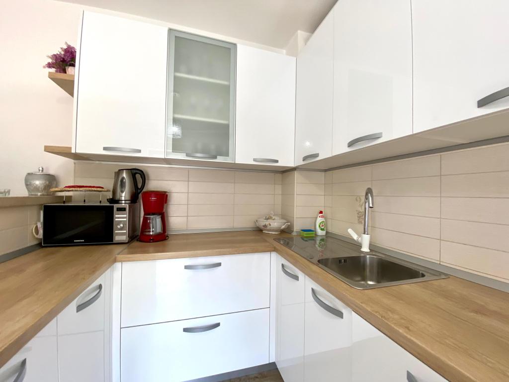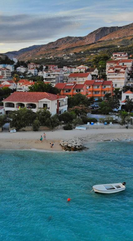 Volledig nieuwe appartementen gelegen op 10 meter van de zee in een rustige omgeving. In de omgeving is een markt, café-restaurant, bakker, apotheek. De appartementen bevinden zich 12 km van Split, 13 km van Omis. De appartementen hebben grote terrassen.