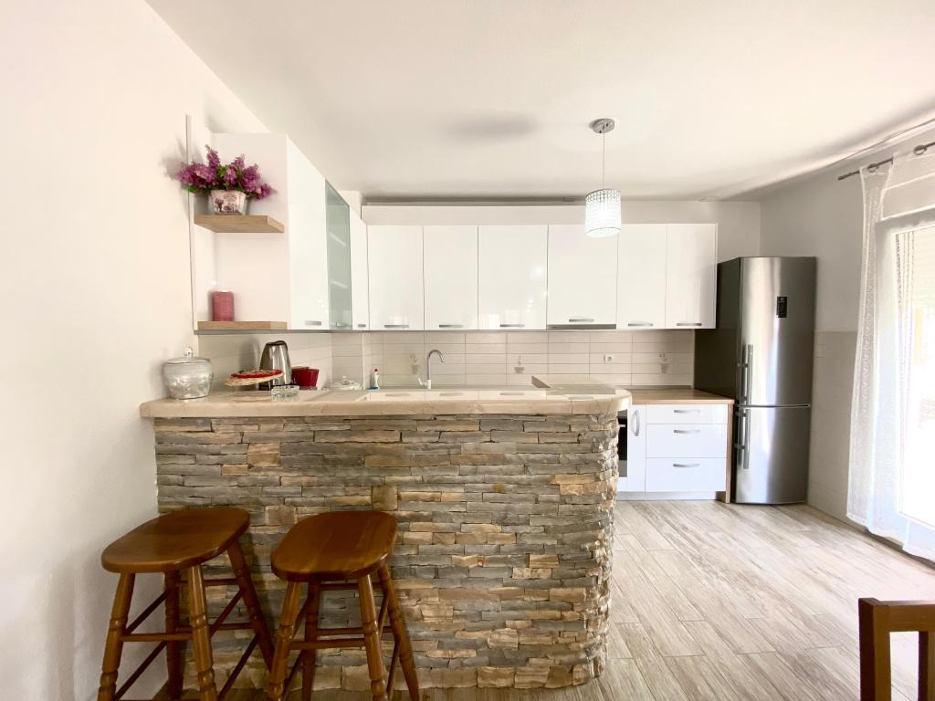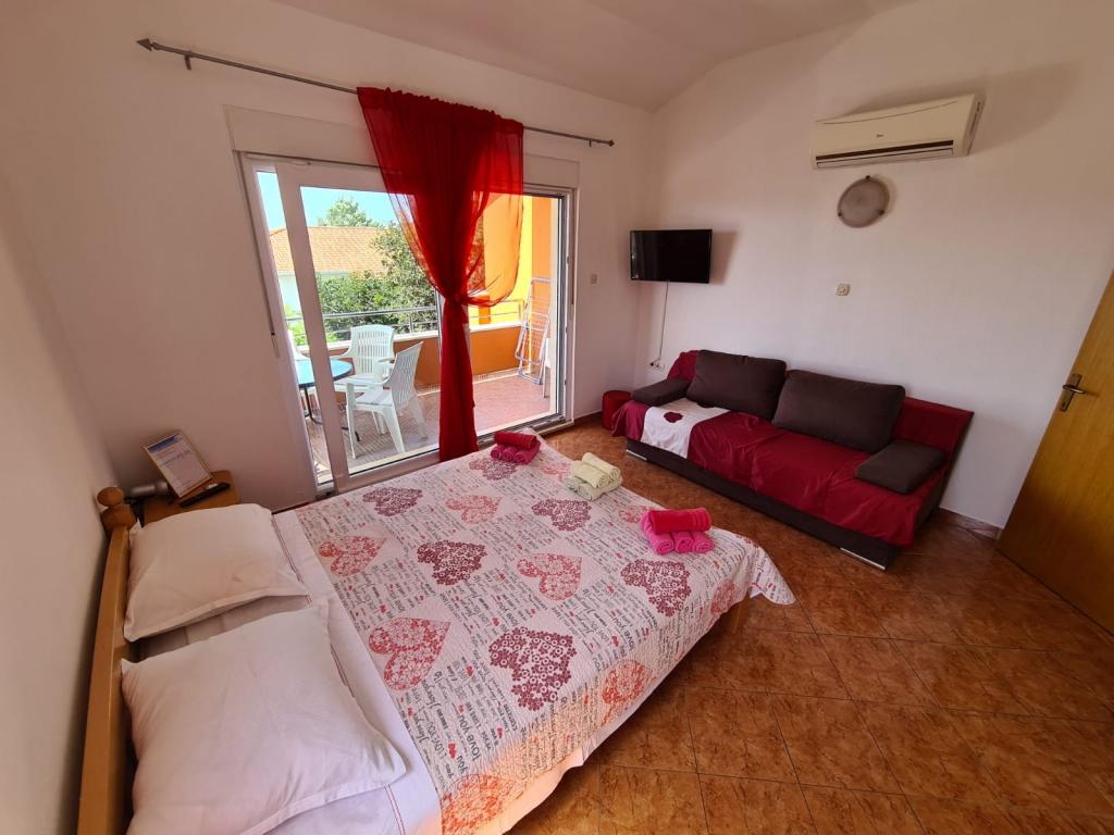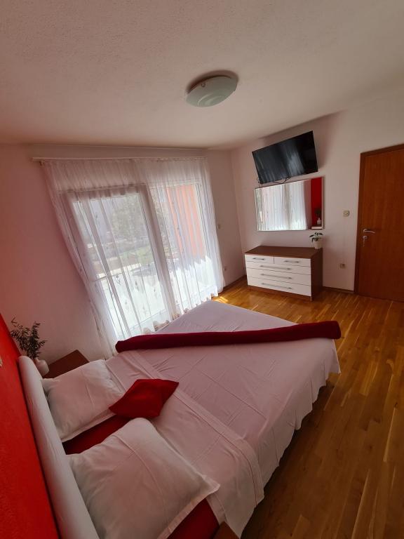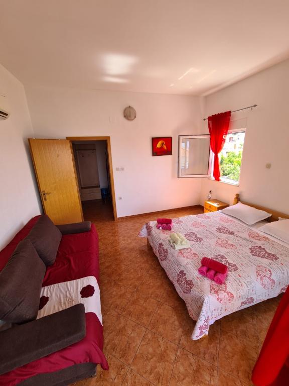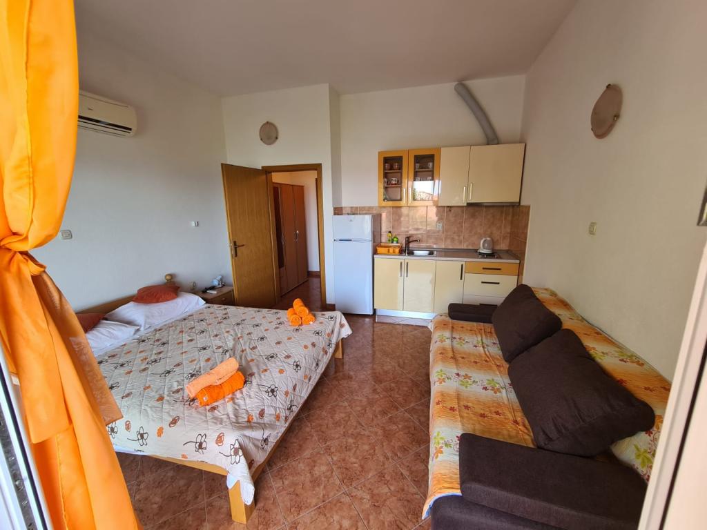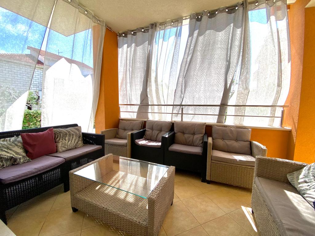 Inlusief wel Toeristenbelasting.De prijs van het appartement is ook inclusief een ligstoel die wordt geleverd met een parasol voor betere bescherming tegen de zon op hete zomermiddagen en ochtenden. Parkeren is ook bij de prijs inbegrepen en bevindt zich direct naast het appartement. Bij een reservering van 7 dagen en meer, serveren wij gasten vis gevangen met onze eigen boot en perziken geplukt in ons eigen veld. We verkopen ook zelfgemaakte glühwein en brandewijn tegen een lage prijs. We bieden ook zelfgemaakte olijfolie aan, en we verkopen deze ook in grotere hoeveelheden.