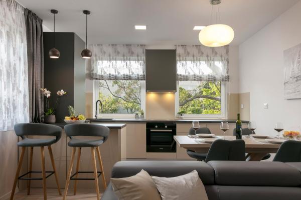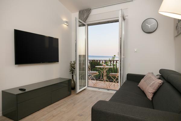 Volledig uitgeruste en moderne appartement in het dorp op 10 km van Split. De inrichting is gelegen op een afstand van 30 meter van de zee en in de nabijheid zijn alle benodigde voorzieningen en attracties voor een aangename en mooie kamer. Het appartement is comfortabel, en volledig uitgerust, heeft ook een prachtig uitzicht over de zee en de eilanden.