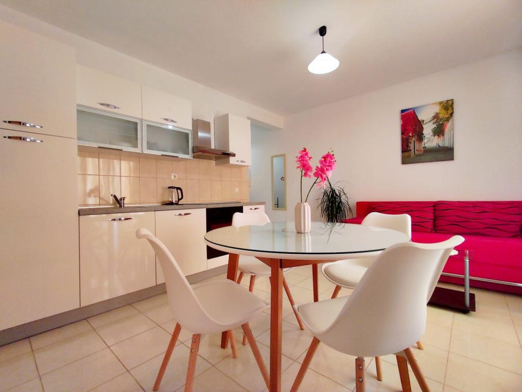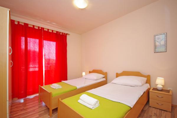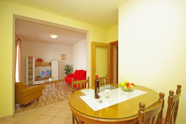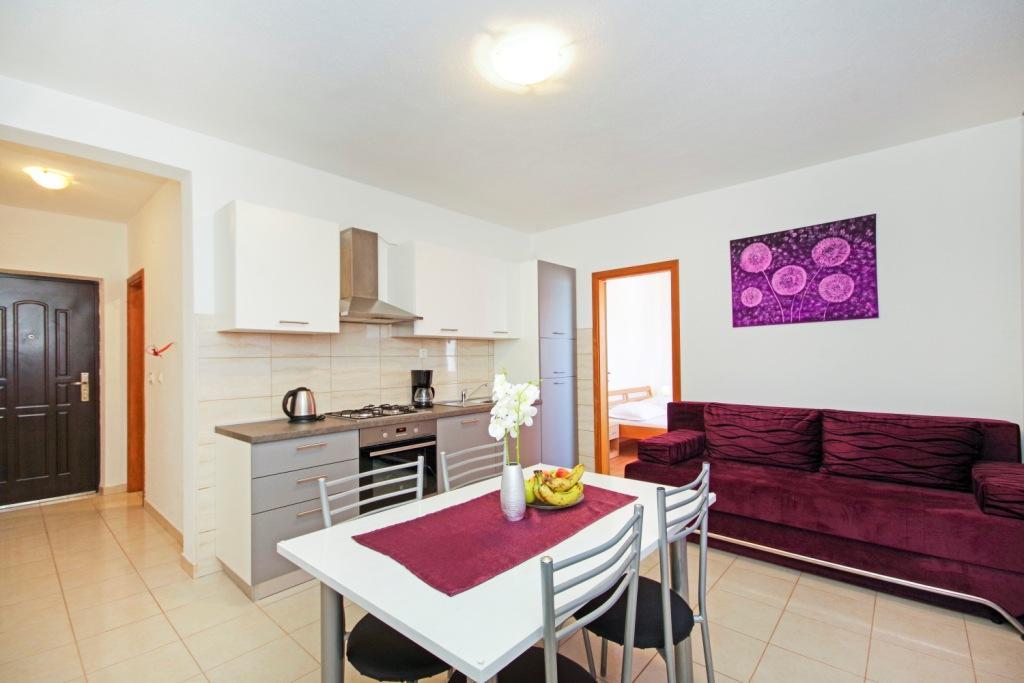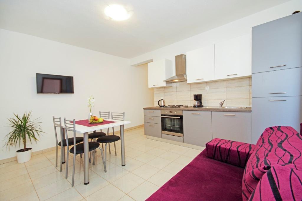 Appartementen, evenals het hele gebouw behuizing schoon, goed onderhouden, leuke gastvrouw zorgt voor de gasten, kan nog steeds terug te gaan. Goede plek om nabijgelegen steden als Omis, Split en Trogir te bezoeken