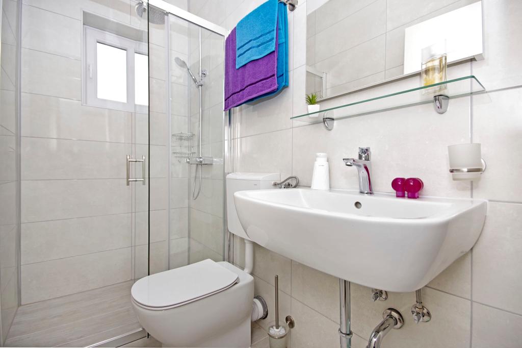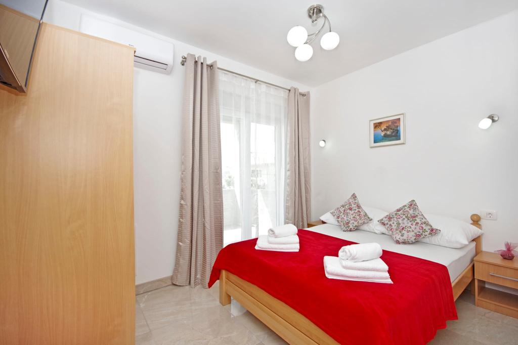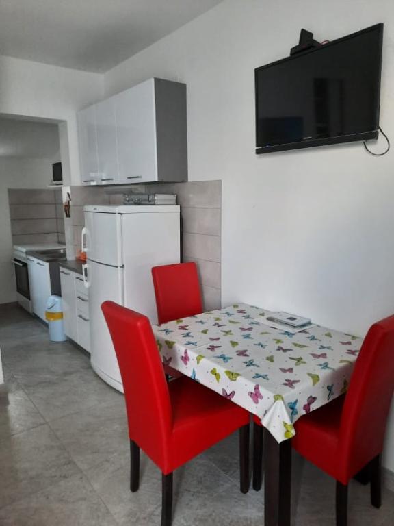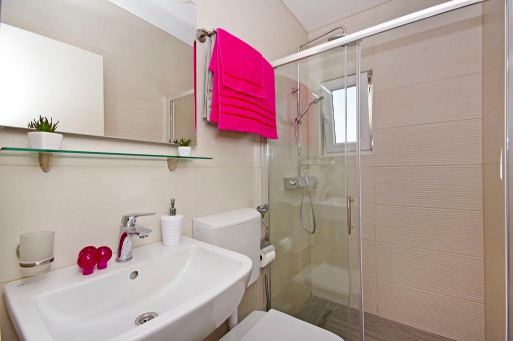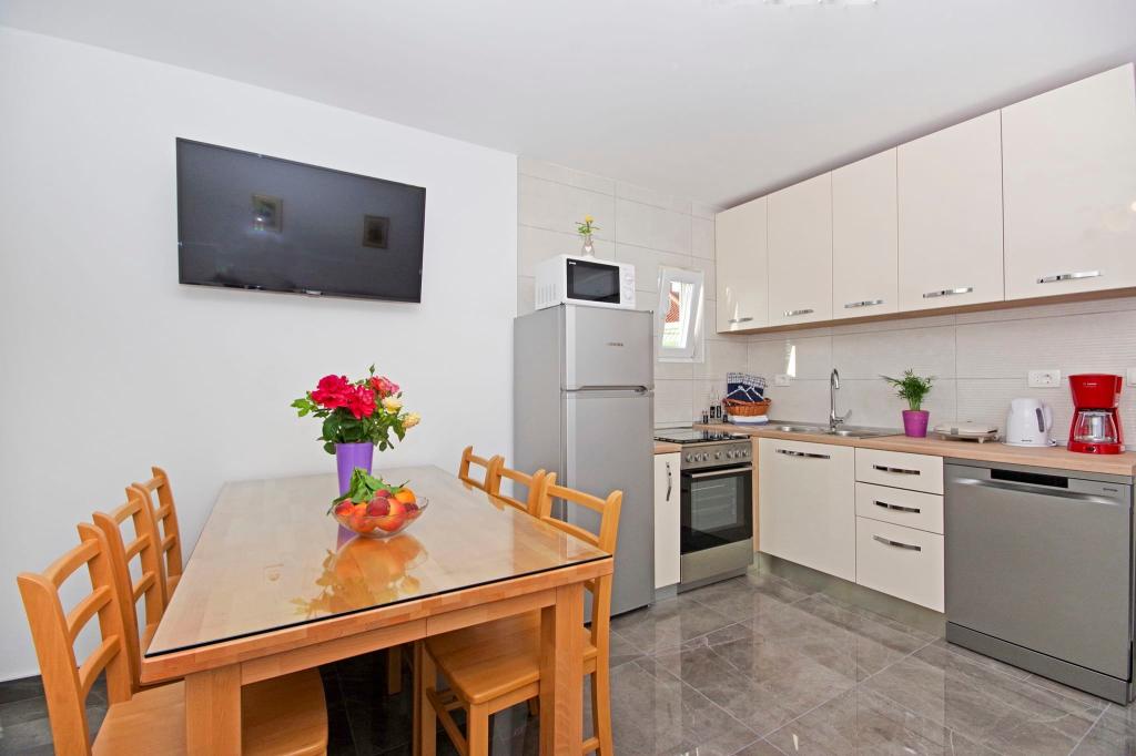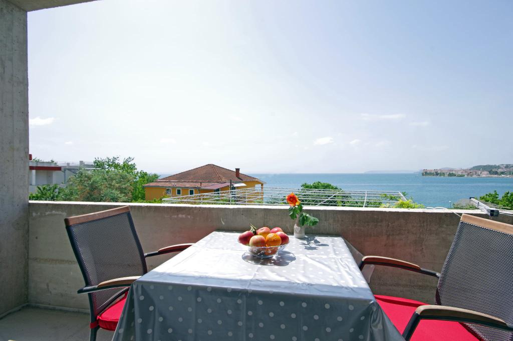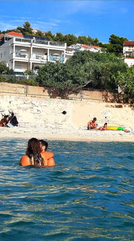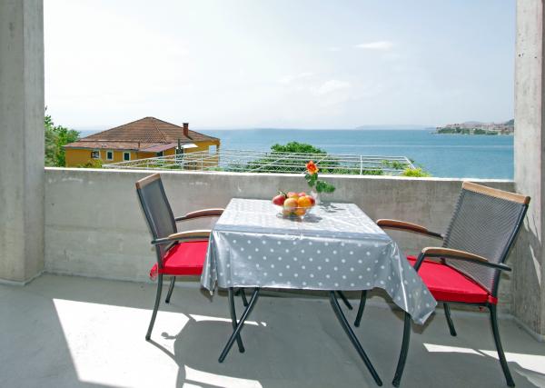 Mooi schoon appartement, volledig uitgerust, met een terras, barbecue en een prachtig uitzicht op de zee. Op het dak - nog een terras, is er een nog mooier uitzicht op de zee met ligstoelen, stoelen, een grill en een jacuzzi. De zee ligt op slechts een steenworp afstand van het appartement, prachtig turkoois. Het strand is grind, maar je kunt ook wit zand en schelpen in de zee vinden. Home Ivanka is erg aardig, hartelijk, altijd bereid. Ik raad het zowel kleine als grote gezinnen aan. We zijn tevreden, we komen zeker nog een keertje terug.