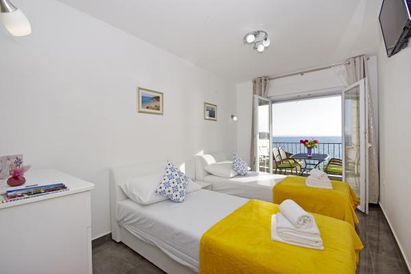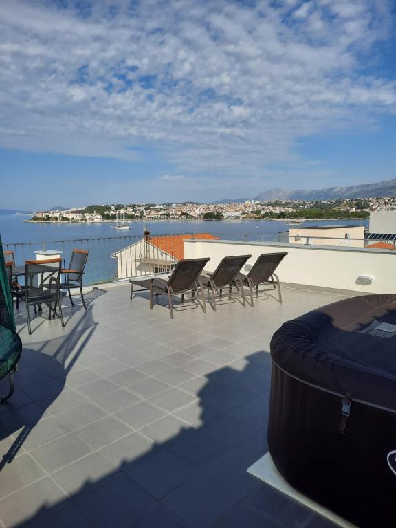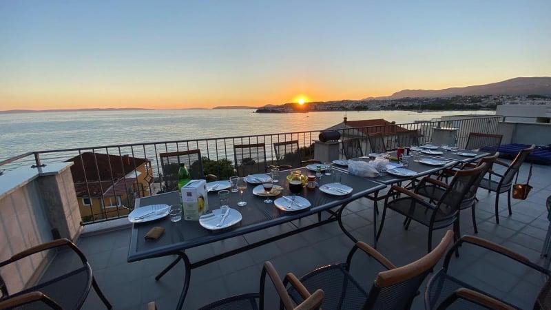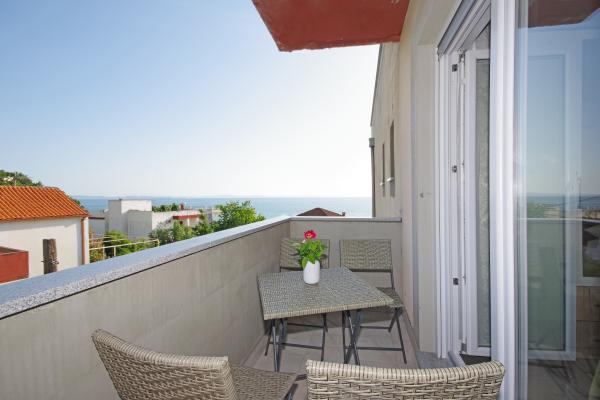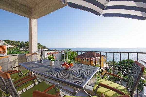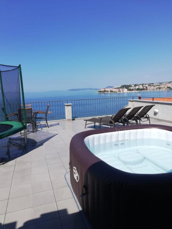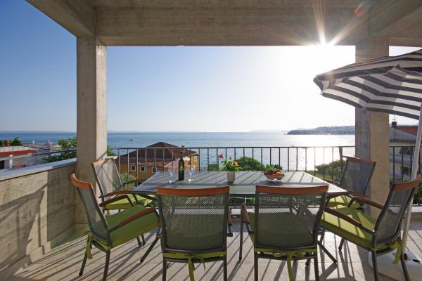 Luxe groot schoon appartement met prachtig uitzicht op zee. Het appartement is van alle gemakken voorzien. Er is airconditioning in elke kamer. Het heeft twee terrassen. De ene is intern en de andere is extern. Elk appartement heeft een grill en jacuzzi, buitendouche, ligbedden. Alle appartementen hebben uitzicht op zee. Het dakterras heeft het mooiste uitzicht. Het strand ligt dicht bij 2 minuten. te voet. Er zijn verschillende restaurants in de buurt aan het strand. In de directe omgeving zijn er boodschappen, een apotheek, een bakkerij... De gastheren Ivan en Mário zijn vriendelijk, zorgzaam en zeer gastvrij. Ze kunnen zelfs de blauwe uit de lucht weerstaan. We hebben nog steeds contact. Wij zijn hier 5 keer geweest. Wij waren hier voor het eerst in 2018 en komen graag terug. Wij voelen ons hier thuis