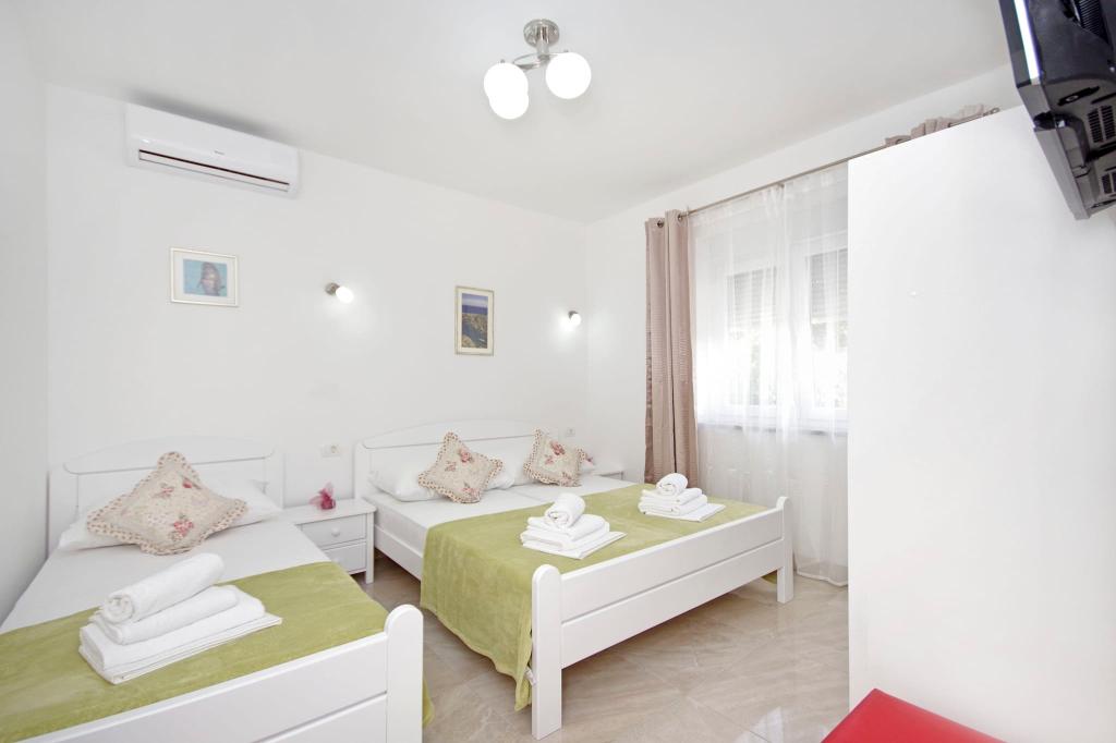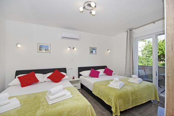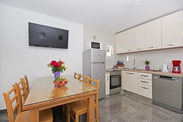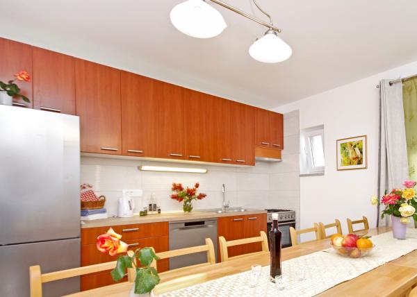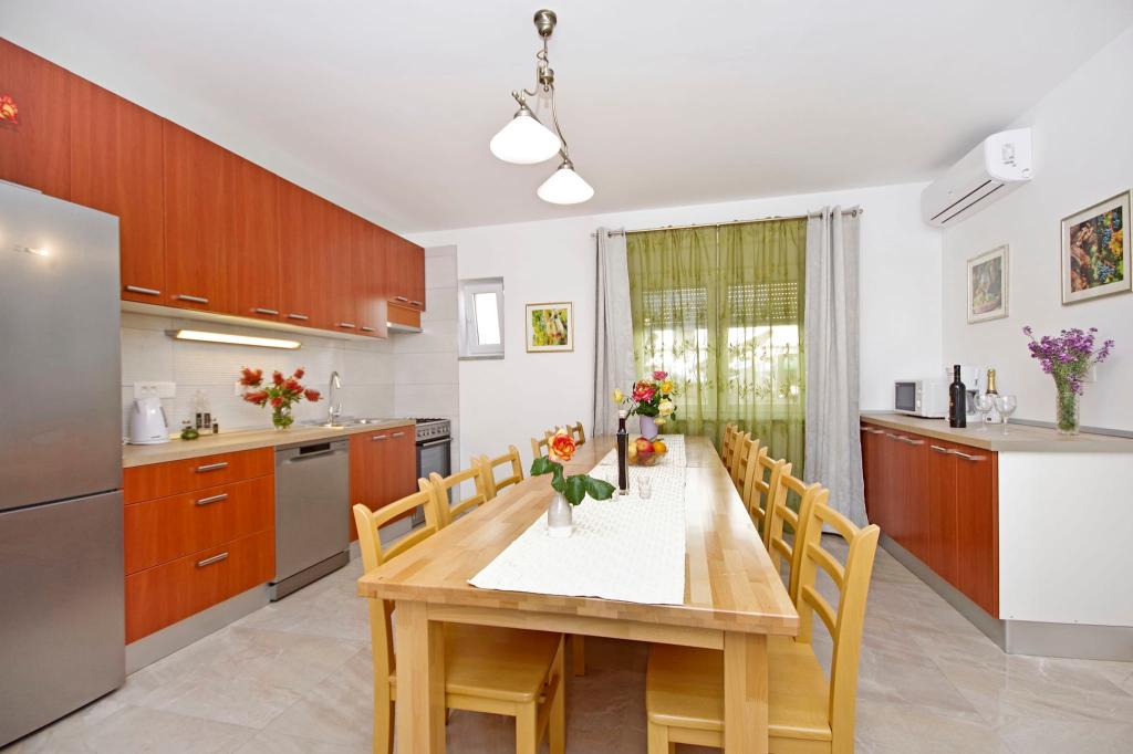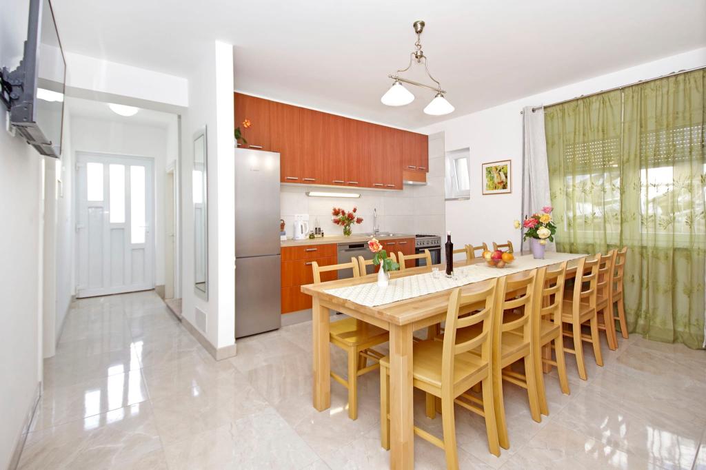 Prachtige schone accommodatie met een geweldige gastvrouw. De gastvrouw is erg behulpzaam en hoewel ze in het Kroatisch communiceert, probeert ze altijd alles duidelijk uit te leggen. Accommodatie mooi, ziet er beter uit dan op de foto's. We hadden een appartement 7 + 2, elke kamer had een eigen badkamer. uitrusting met douche. Op het terras barbecue, trampoline en schommels voor kinderen. Luxe accommodatie, waar we zeker nog een keer naar terug gaan. Op korte loopafstand van de zee...