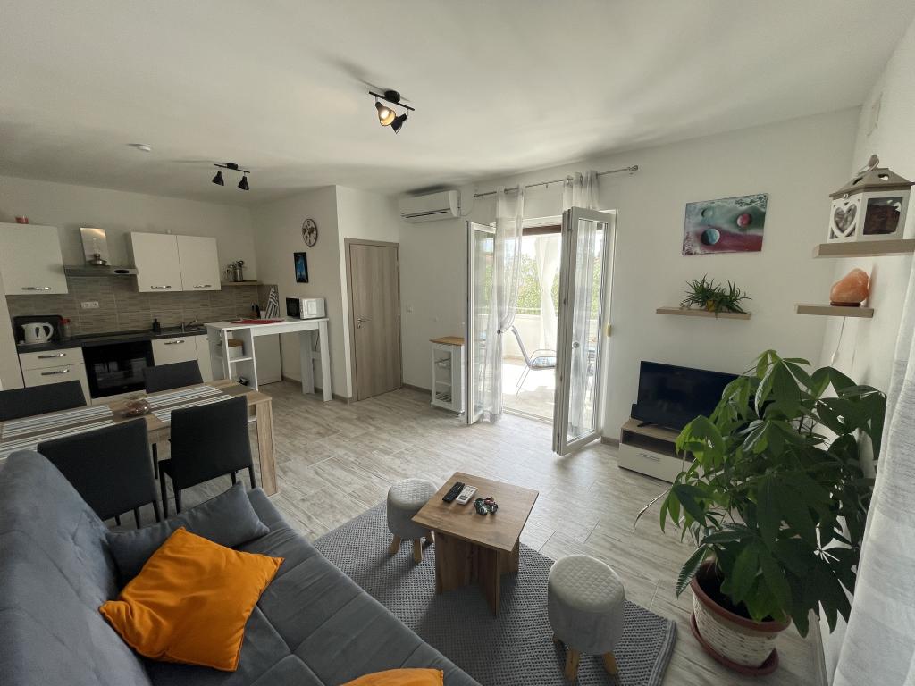 Nieuwe moderne appartementen in Poljana, Ugljan Island, provincie Zadar, op 100 meter van het strand, winkel, restaurant, café liggen op 200 meter van het appartement, elk appartement heeft 60m2, twee slaapkamers, een woonkamer en een volledig uitgeruste keuken met een groot balkon . Ideaal voor liefhebbers van wandelen, fietsen en boomklimmen, een bezoek aan het fort Sveti Mihovil op 4 km afstand, het eiland Galovac op 80 meter van het vasteland. De veerhaven ligt op 2,5 km afstand en er vertrekt elk uur een trein die in 25 minuten naar Zadar rijdt.
