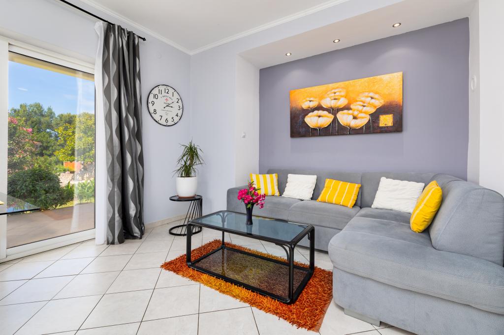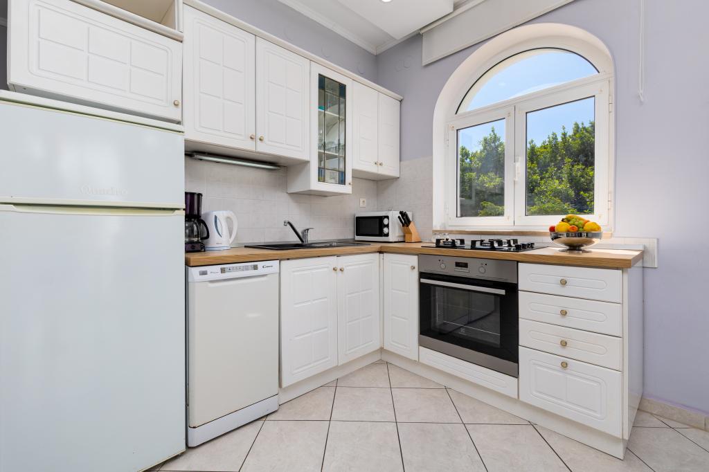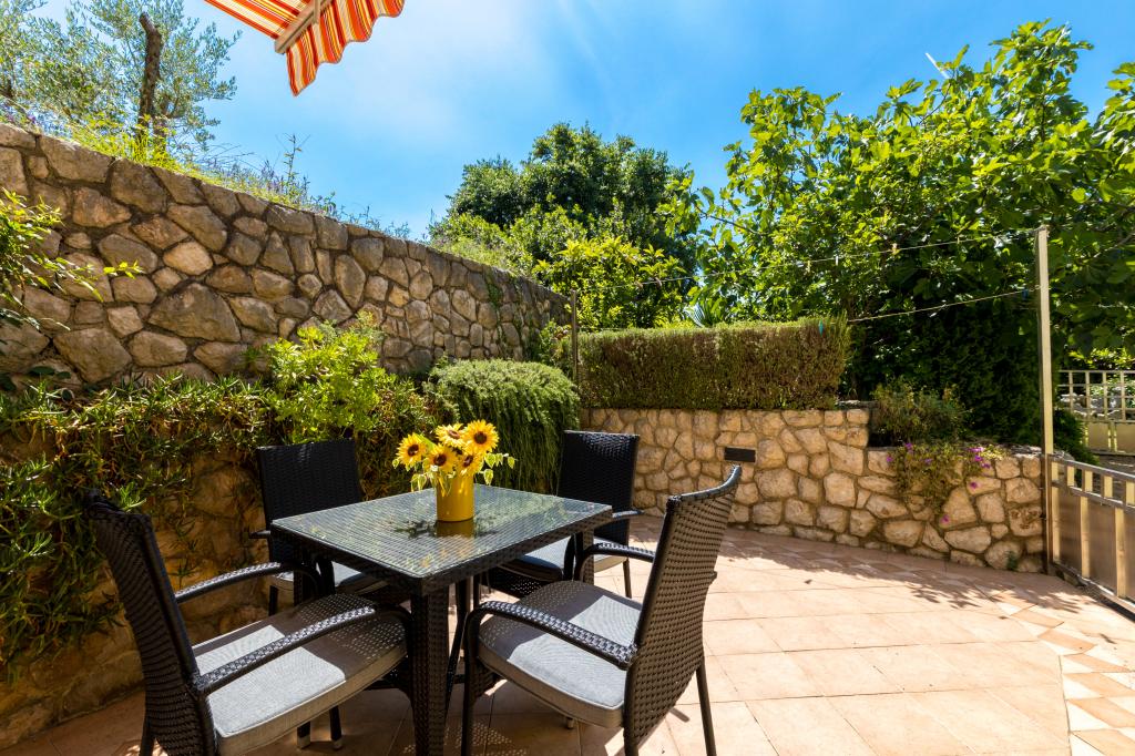 Een gezellig en net huis in een rustige omgeving, met een prachtig aangelegde tuin en een overdekt terras, ideaal om buiten te vertoeven. De tuin is smaakvol ingericht met een gazon, bloemen en mediterrane planten en biedt privacy en een aangename sfeer om te ontspannen. Het restaurant en het strand liggen op slechts twee minuten lopen van het huis.