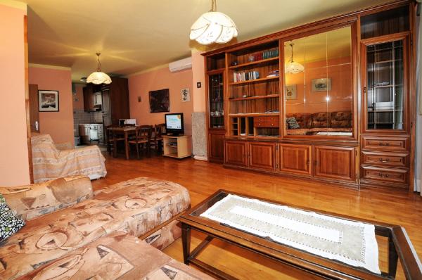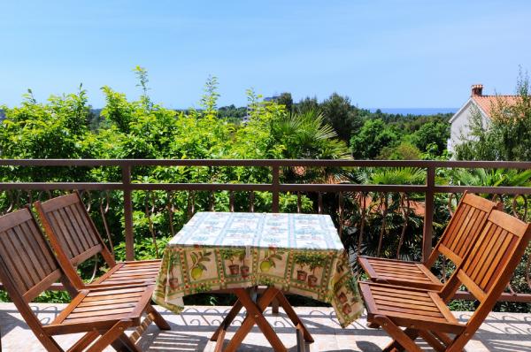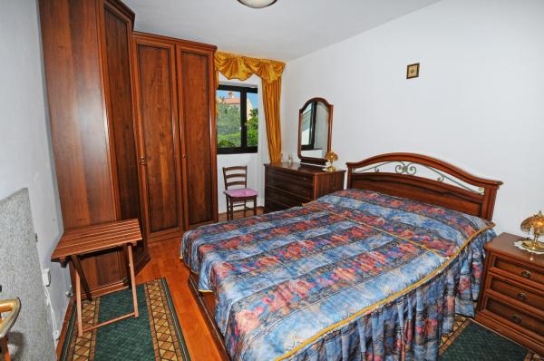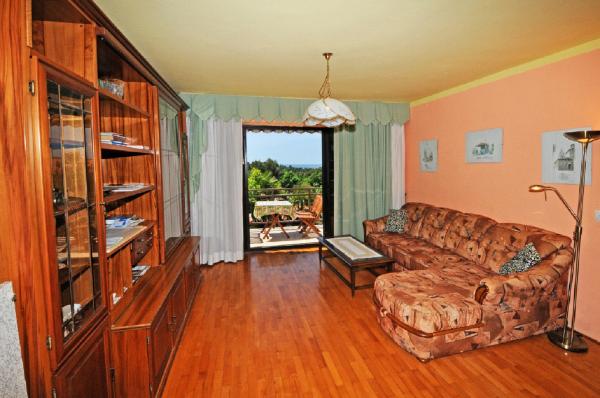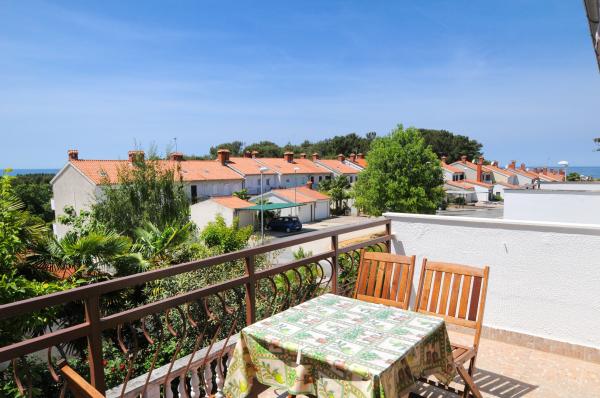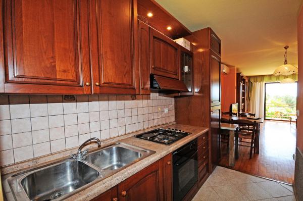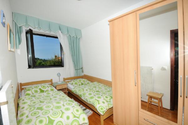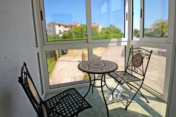 Het appartement is gelegen op de eerste verdieping van een gebouw omgeven door groen in een rustig elite deel van Porec, boven het sportcentrum hotel Diamant. De comfortabel ingerichte appartement bestaat uit een ruime woonkamer, een grotere en kleinere slaapkamer, een terras, gesloten balkon, keuken, badkamer met douche en toilet en een hal. Vanuit de woonkamer, terras en een kleinere slaapkamer heeft een prachtig uitzicht op de zee. De rest van de appartementen met uitzicht op een eigen prachtig aangelegde tuin met fruitbomen en bloemen in de tuin is een eigen verplaatsbare omheining beschermde parkeerplaats voor een auto. Het duurt slechts tien minuten lopen door de schaduw van dennenbomen aan de Blauwe Vlag stranden te krijgen. Er is ook een centrum voor watersport (parachute, banaan, buizen, enz.). Op een afstand van slechts 2 km van de appartementen onlangs een groot waterpark Aquacolors Porec.